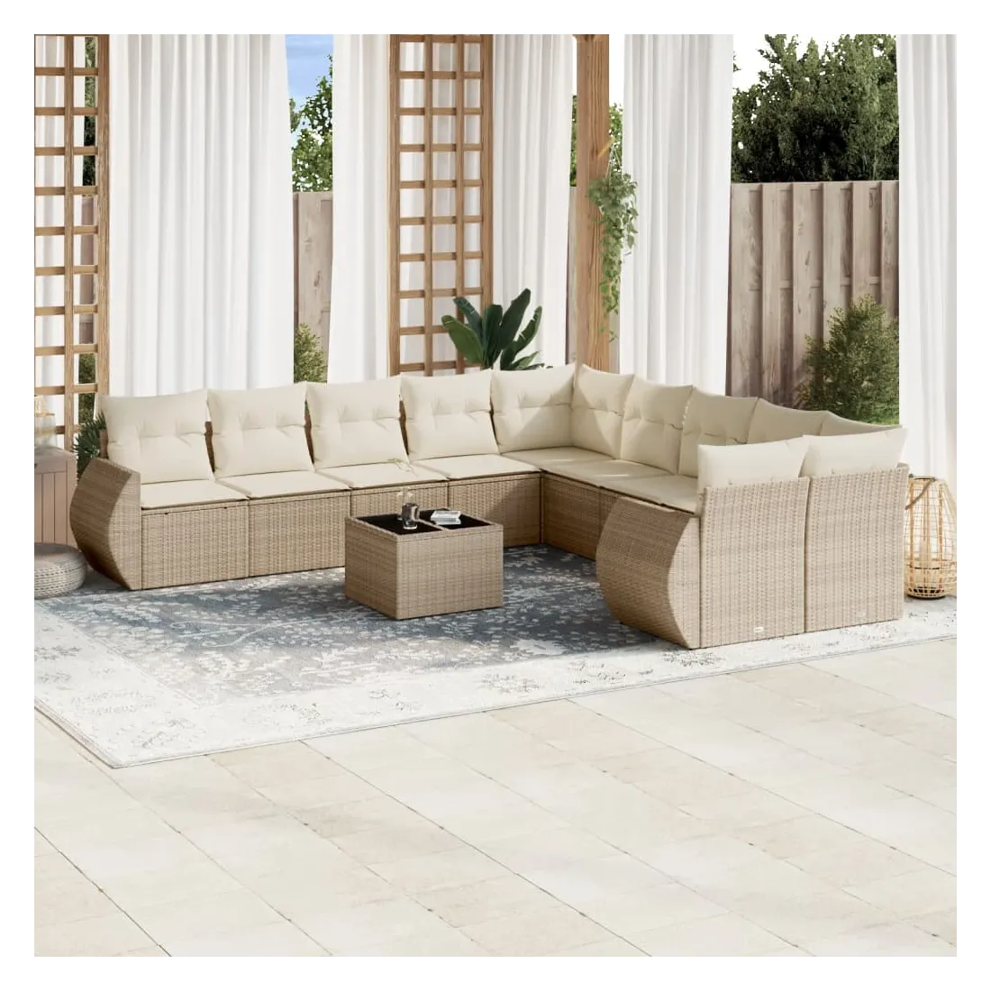 Salon de jardin 11 pcs avec coussins beige résine tressée