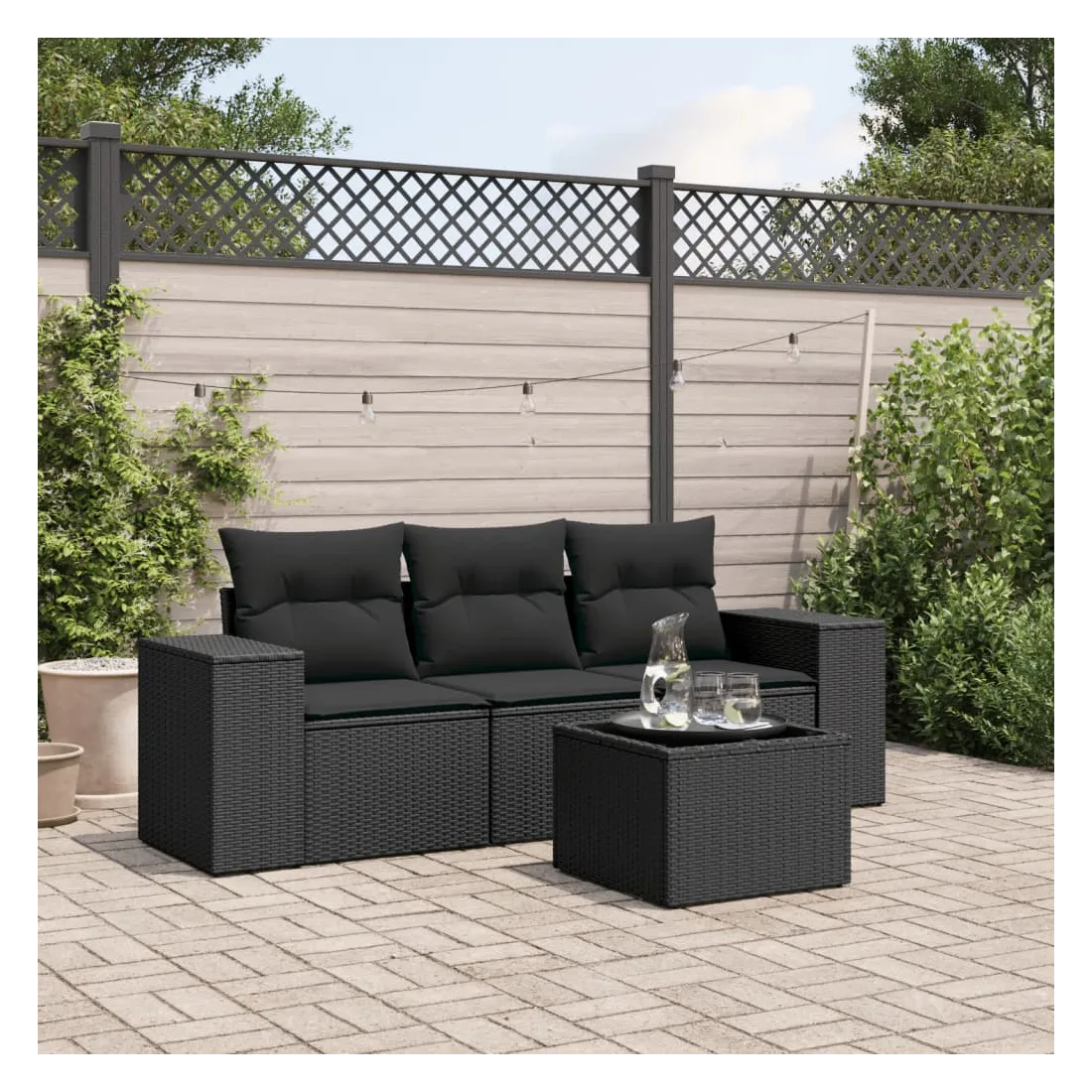 Cet ensemble de canapés de jardin est le complément parfait de votre arrière-cour, terrasse ou patio, offrant un espace confortable et accueillant pour discuter avec la famille et les amis ou simplement se détendre et profiter de l'extérieur. Matériau durable : la résine tressée, également connue sous le nom de poly rotin, est un matériau synthétique solide et nécessitant peu d'entretien qui ressemble au rotin naturel. Il est léger, facile à nettoyer et couramment utilisé pour les meubles d'extérieur en raison de sa durabilité et de ses propriétés de résistance aux intempéries.Fonction de rangement avec sac résistant à l'eau : le mobilier de jardin dispose d'un espace de rangement sous l'assise, complété par un sac résistant à l'eau pour ranger coussins, jouets et autres objets. Le sac intérieur peut être solidement fixé au mobilier d'extérieur grâce à des attaches auto-agrippantes pour plus de stabilité.Dessus en verre : le dessus de la table d'extérieur est fabriqué en verre trempé solide et durable, ce qui le rend facile à nettoyer avec un chiffon humide et ajoute une touche d'élégance à votre espace extérieur.Housse amovible et lavable : ces coussins de siège sont dotés de housses amovibles pour un lavage et un entretien faciles.Conception modulaire : cet ensemble de meubles d'extérieur a une conception modulaire, ce qui le rend complètement flexible et facile à déplacer, afin que vous puissiez créer un agencement de meubles d'extérieur personnalisé. Bon à savoir :Pour que vos meubles d'extérieur restent beaux, nous vous recommandons de les protéger avec une housse imperméable.