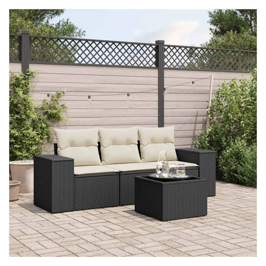 Cet ensemble de canapés de jardin est le complément parfait de votre arrière-cour, terrasse ou patio, offrant un espace confortable et accueillant pour discuter avec la famille et les amis ou simplement se détendre et profiter de l'extérieur. Matériau durable : la résine tressée, également connue sous le nom de poly rotin, est un matériau synthétique solide et nécessitant peu d'entretien qui ressemble au rotin naturel. Il est léger, facile à nettoyer et couramment utilisé pour les meubles d'extérieur en raison de sa durabilité et de ses propriétés de résistance aux intempéries.Fonction de rangement avec sac résistant à l'eau : le mobilier de jardin dispose d'un espace de rangement sous l'assise, complété par un sac résistant à l'eau pour ranger coussins, jouets et autres objets. Le sac intérieur peut être solidement fixé au mobilier d'extérieur grâce à des attaches auto-agrippantes pour plus de stabilité.Dessus en verre : le dessus de la table d'extérieur est fabriqué en verre trempé solide et durable, ce qui le rend facile à nettoyer avec un chiffon humide et ajoute une touche d'élégance à votre espace extérieur.Housse amovible et lavable : ces coussins de siège sont dotés de housses amovibles pour un lavage et un entretien faciles.Conception modulaire : cet ensemble de meubles d'extérieur a une conception modulaire, ce qui le rend complètement flexible et facile à déplacer, afin que vous puissiez créer un agencement de meubles d'extérieur personnalisé. Bon à savoir :Pour que vos meubles d'extérieur restent beaux, nous vous recommandons de les protéger avec une housse imperméable.