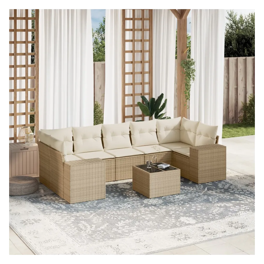 Cet ensemble de canapés de jardin est le complément parfait de votre arrière-cour, terrasse ou patio, offrant un espace confortable et accueillant pour discuter avec la famille et les amis ou simplement se détendre et profiter de l'extérieur. Matériau durable : la résine tressée, également connue sous le nom de poly rotin, est un matériau synthétique solide et nécessitant peu d'entretien qui ressemble au rotin naturel. Il est léger, facile à nettoyer et couramment utilisé pour les meubles d'extérieur en raison de sa durabilité et de ses propriétés de résistance aux intempéries.Fonction de rangement avec sac résistant à l'eau : le mobilier de jardin dispose d'un espace de rangement sous l'assise, complété par un sac résistant à l'eau pour ranger coussins, jouets et autres objets. Le sac intérieur peut être solidement fixé au mobilier d'extérieur grâce à des attaches auto-agrippantes pour plus de stabilité.Dessus en verre : le dessus de la table d'extérieur est fabriqué en verre trempé solide et durable, ce qui le rend facile à nettoyer avec un chiffon humide et ajoute une touche d'élégance à votre espace extérieur.Housse amovible et lavable : ces coussins de siège sont dotés de housses amovibles pour un lavage et un entretien faciles.Conception modulaire : cet ensemble de meubles d'extérieur a une conception modulaire, ce qui le rend complètement flexible et facile à déplacer, afin que vous puissiez créer un agencement de meubles d'extérieur personnalisé. Bon à savoir :Pour que vos meubles d'extérieur restent beaux, nous vous recommandons de les protéger avec une housse imperméable.