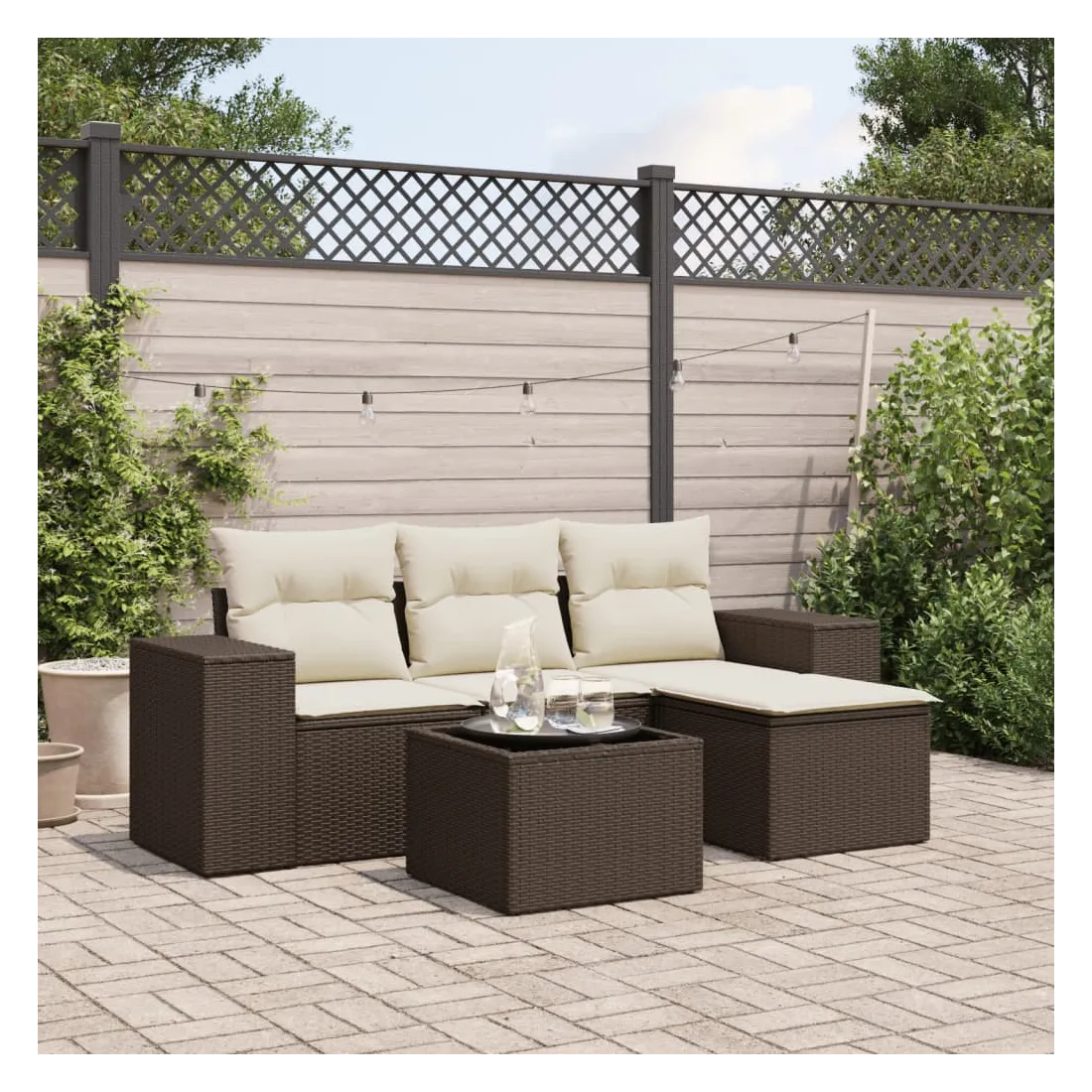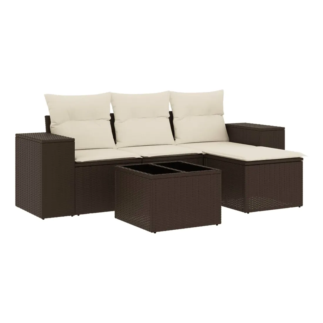 Cet ensemble de canapés de jardin est le complément parfait de votre arrière-cour, terrasse ou patio, offrant un espace confortable et accueillant pour discuter avec la famille et les amis ou simplement se détendre et profiter de l'extérieur. Matériau durable : la résine tressée, également connue sous le nom de poly rotin, est un matériau synthétique solide et nécessitant peu d'entretien qui ressemble au rotin naturel. Il est léger, facile à nettoyer et couramment utilisé pour les meubles d'extérieur en raison de sa durabilité et de ses propriétés de résistance aux intempéries.Fonction de rangement avec sac résistant à l'eau : le mobilier de jardin dispose d'un espace de rangement sous l'assise, complété par un sac résistant à l'eau pour ranger coussins, jouets et autres objets. Le sac intérieur peut être solidement fixé au mobilier d'extérieur grâce à des attaches auto-agrippantes pour plus de stabilité.Dessus en verre : le dessus de la table d'extérieur est fabriqué en verre trempé solide et durable, ce qui le rend facile à nettoyer avec un chiffon humide et ajoute une touche d'élégance à votre espace extérieur.Housse amovible et lavable : ces coussins de siège sont dotés de housses amovibles pour un lavage et un entretien faciles.Conception modulaire : cet ensemble de meubles d'extérieur a une conception modulaire, ce qui le rend complètement flexible et facile à déplacer, afin que vous puissiez créer un agencement de meubles d'extérieur personnalisé. Bon à savoir :Pour que vos meubles d'extérieur restent beaux, nous vous recommandons de les protéger avec une housse imperméable.