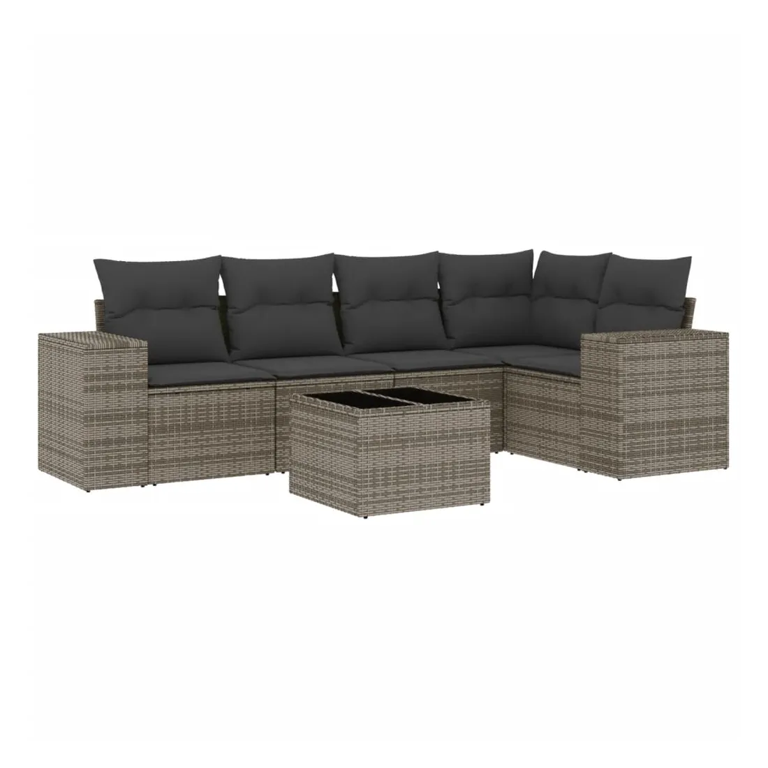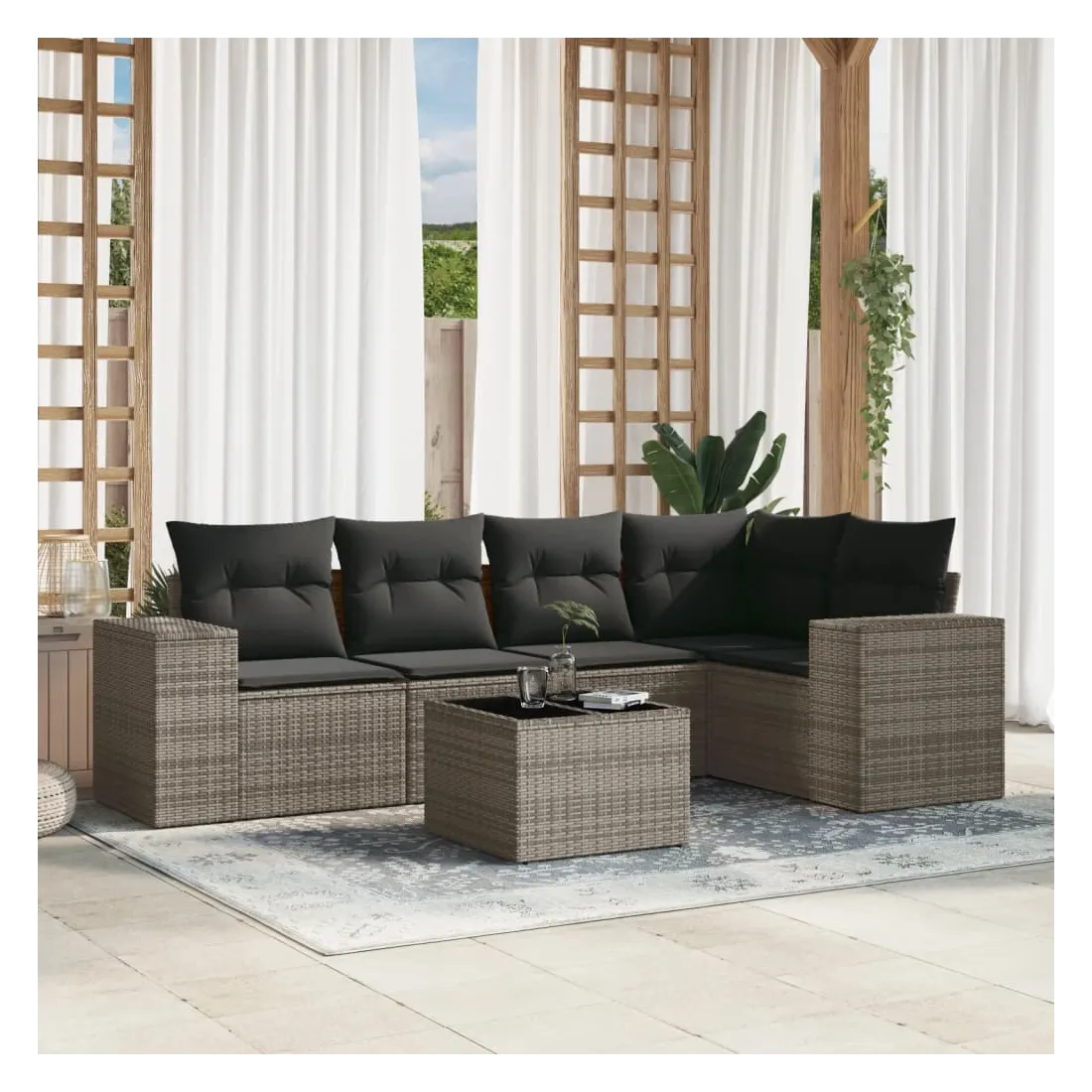 Salon de jardin 6 pcs avec coussins gris résine tressée