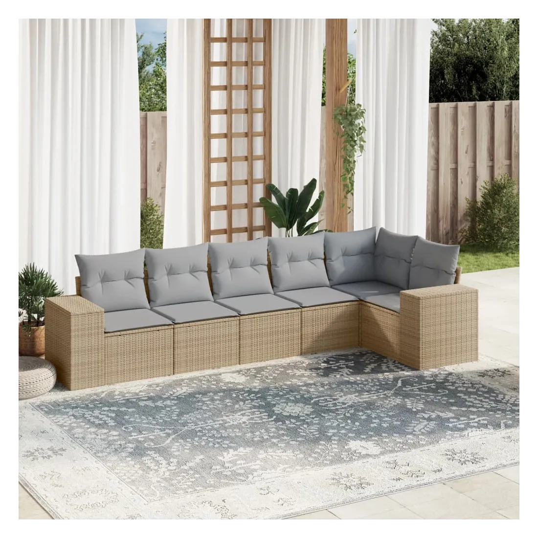 Cet ensemble de canapés de jardin est le complément parfait de votre arrière-cour, terrasse ou patio, offrant un espace confortable et accueillant pour discuter avec la famille et les amis ou simplement se détendre et profiter de l'extérieur. Matériau durable : la résine tressée, également connue sous le nom de poly rotin, est un matériau synthétique solide et nécessitant peu d'entretien qui ressemble au rotin naturel. Il est léger, facile à nettoyer et couramment utilisé pour les meubles d'extérieur en raison de sa durabilité et de ses propriétés de résistance aux intempéries.Fonction de rangement avec sac résistant à l'eau : le mobilier de jardin dispose d'un espace de rangement sous l'assise, complété par un sac résistant à l'eau pour ranger coussins, jouets et autres objets. Le sac intérieur peut être solidement fixé au mobilier d'extérieur grâce à des attaches auto-agrippantes pour plus de stabilité.Housse amovible et lavable : ces coussins de siège sont dotés de housses amovibles pour un lavage et un entretien faciles.Conception modulaire : cet ensemble de meubles d'extérieur a une conception modulaire, ce qui le rend complètement flexible et facile à déplacer, afin que vous puissiez créer un agencement de meubles d'extérieur personnalisé. Bon à savoir :Pour que vos meubles d'extérieur restent beaux, nous vous recommandons de les protéger avec une housse imperméable.