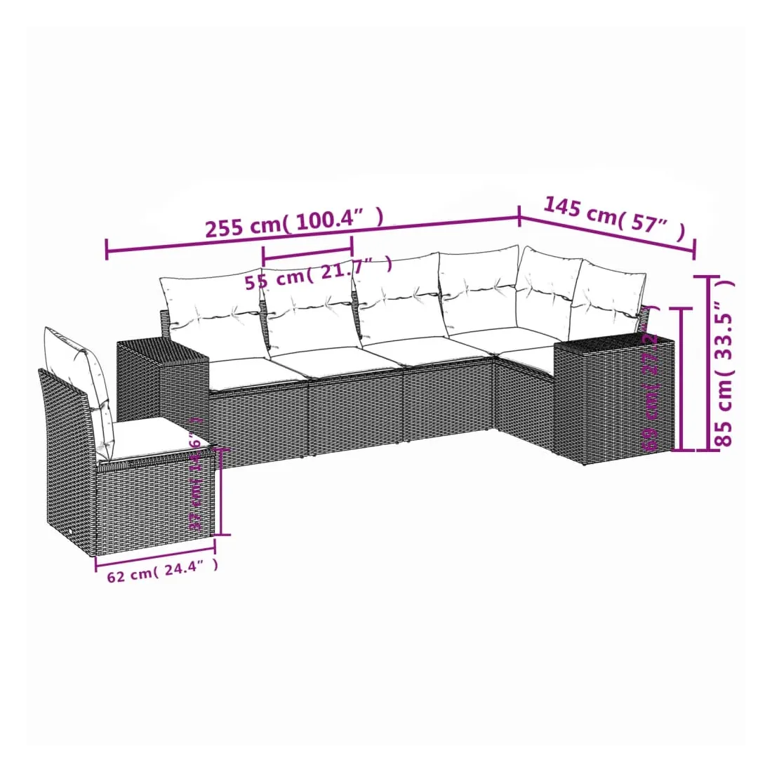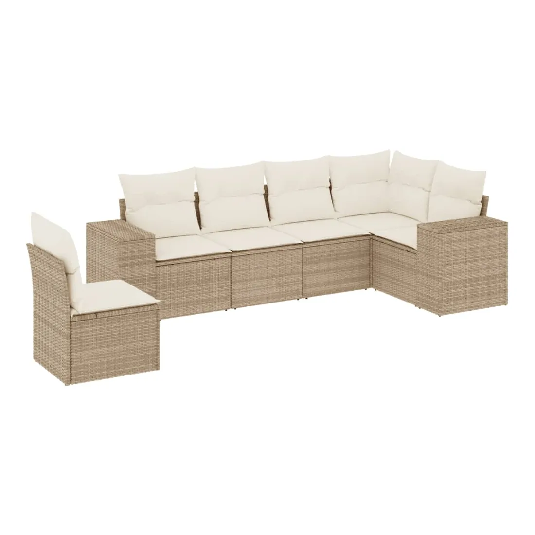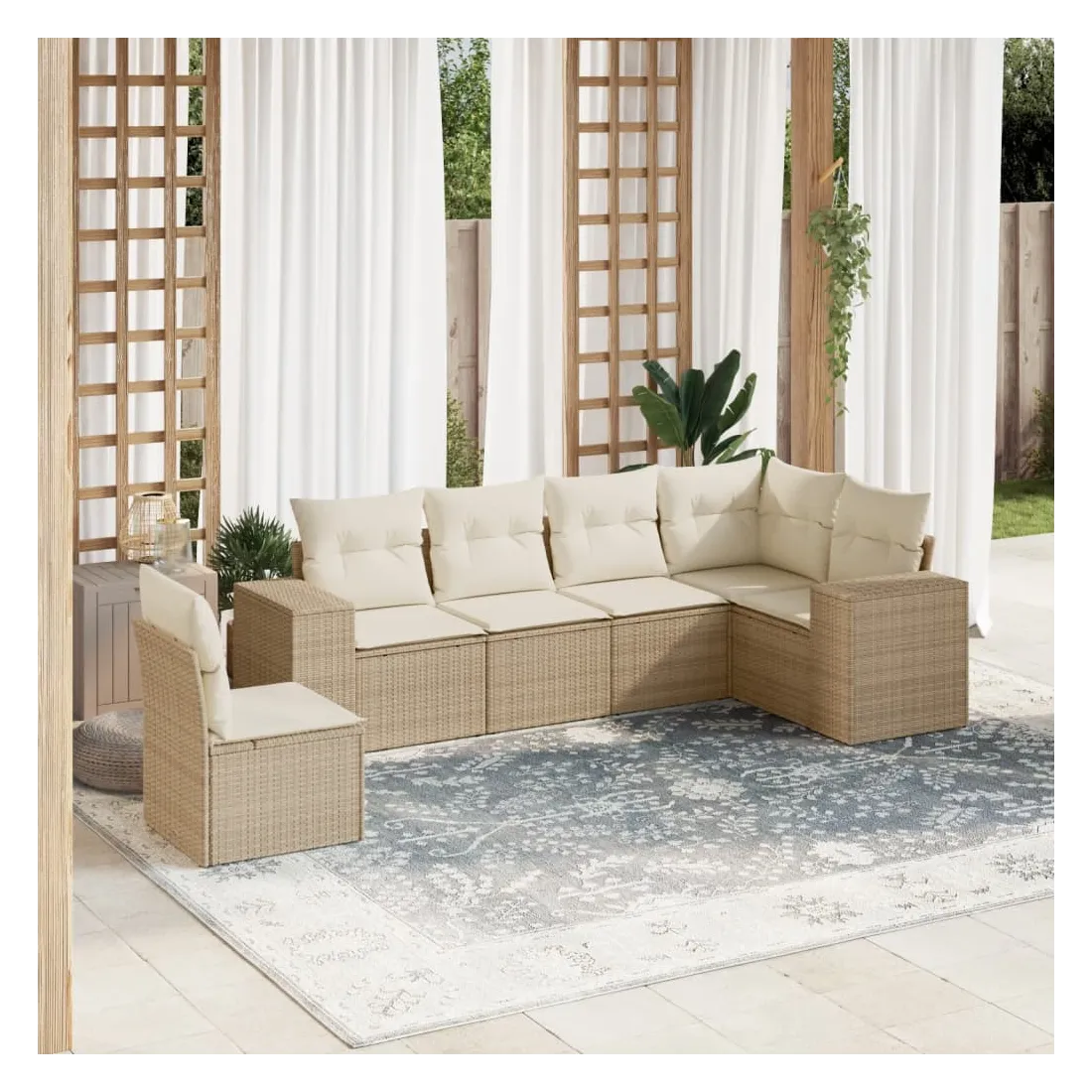 Salon de jardin avec coussins 6 pcs beige résine tressée