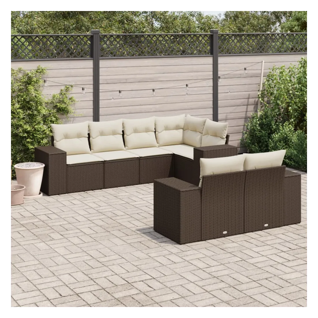 Cet ensemble de canapés de jardin est le complément parfait de votre arrière-cour, terrasse ou patio, offrant un espace confortable et accueillant pour discuter avec la famille et les amis ou simplement se détendre et profiter de l'extérieur. Matériau durable : la résine tressée, également connue sous le nom de poly rotin, est un matériau synthétique solide et nécessitant peu d'entretien qui ressemble au rotin naturel. Il est léger, facile à nettoyer et couramment utilisé pour les meubles d'extérieur en raison de sa durabilité et de ses propriétés de résistance aux intempéries.Fonction de rangement avec sac résistant à l'eau : le mobilier de jardin dispose d'un espace de rangement sous l'assise, complété par un sac résistant à l'eau pour ranger coussins, jouets et autres objets. Le sac intérieur peut être solidement fixé au mobilier d'extérieur grâce à des attaches auto-agrippantes pour plus de stabilité.Housse amovible et lavable : ces coussins de siège sont dotés de housses amovibles pour un lavage et un entretien faciles.Conception modulaire : cet ensemble de meubles d'extérieur a une conception modulaire, ce qui le rend complètement flexible et facile à déplacer, afin que vous puissiez créer un agencement de meubles d'extérieur personnalisé. Bon à savoir :Pour que vos meubles d'extérieur restent beaux, nous vous recommandons de les protéger avec une housse imperméable.