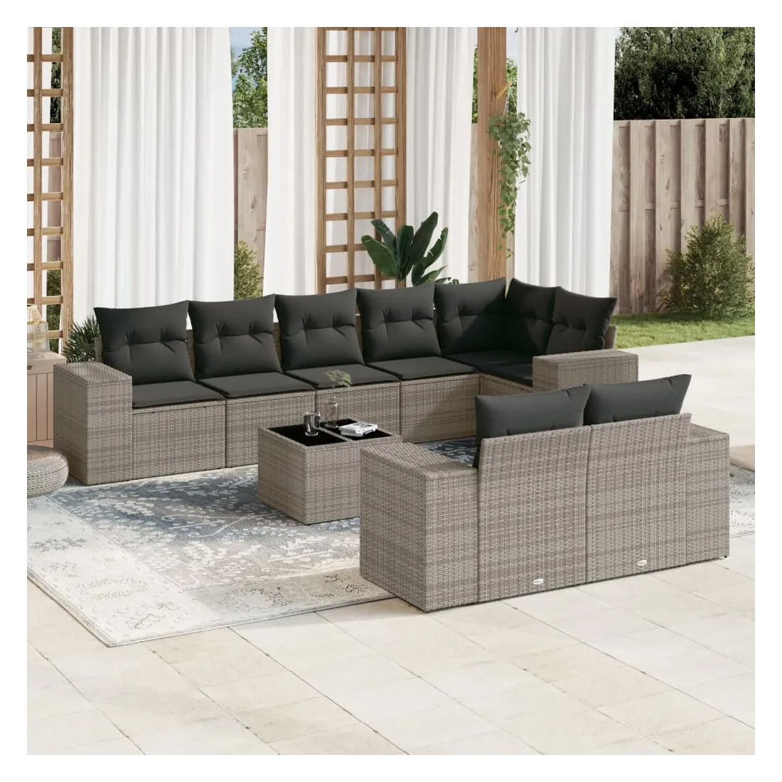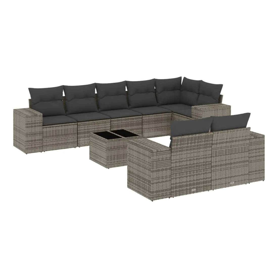 Salon de jardin 9 pcs avec coussins gris résine tressée