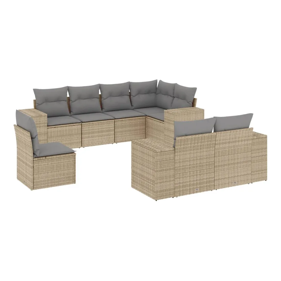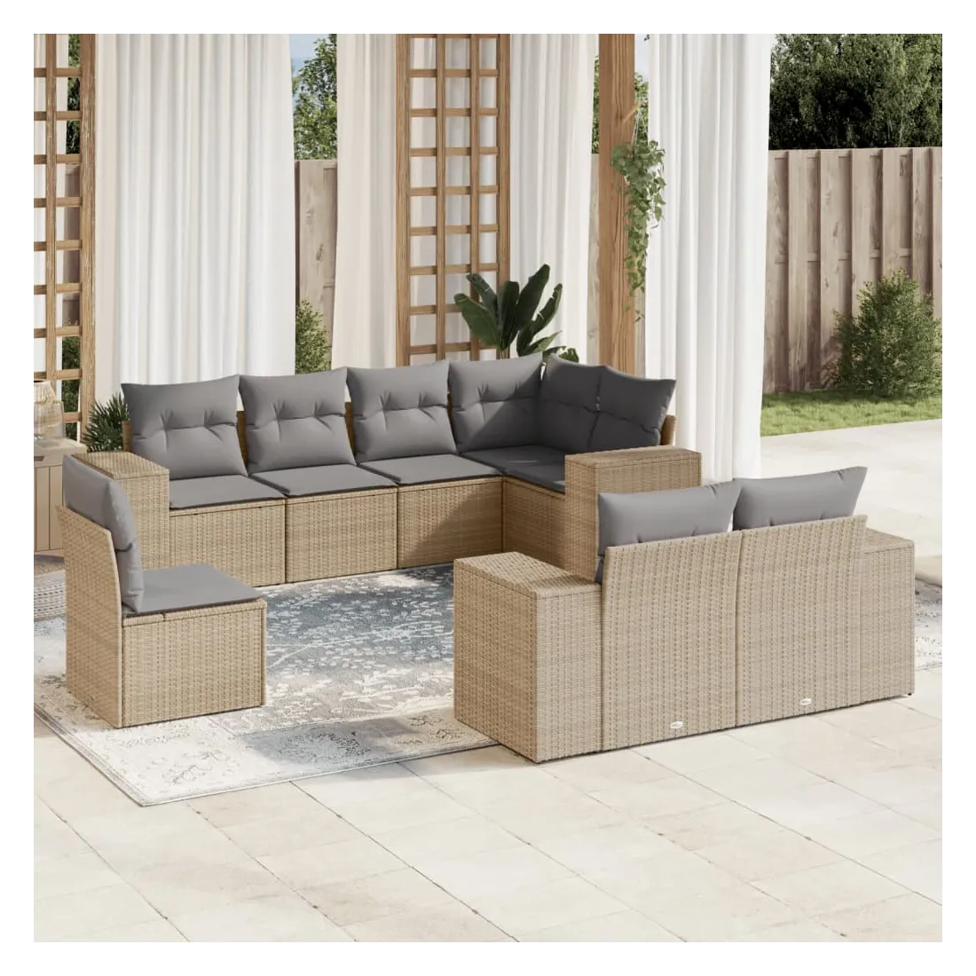 Cet ensemble de canapés de jardin est le complément parfait de votre arrière-cour, terrasse ou patio, offrant un espace confortable et accueillant pour discuter avec la famille et les amis ou simplement se détendre et profiter de l'extérieur. Matériau durable : la résine tressée, également connue sous le nom de poly rotin, est un matériau synthétique solide et nécessitant peu d'entretien qui ressemble au rotin naturel. Il est léger, facile à nettoyer et couramment utilisé pour les meubles d'extérieur en raison de sa durabilité et de ses propriétés de résistance aux intempéries.Fonction de rangement avec sac résistant à l'eau : le mobilier de jardin dispose d'un espace de rangement sous l'assise, complété par un sac résistant à l'eau pour ranger coussins, jouets et autres objets. Le sac intérieur peut être solidement fixé au mobilier d'extérieur grâce à des attaches auto-agrippantes pour plus de stabilité.Housse amovible et lavable : ces coussins de siège sont dotés de housses amovibles pour un lavage et un entretien faciles.Conception modulaire : cet ensemble de meubles d'extérieur a une conception modulaire, ce qui le rend complètement flexible et facile à déplacer, afin que vous puissiez créer un agencement de meubles d'extérieur personnalisé. Bon à savoir :Pour que vos meubles d'extérieur restent beaux, nous vous recommandons de les protéger avec une housse imperméable.
