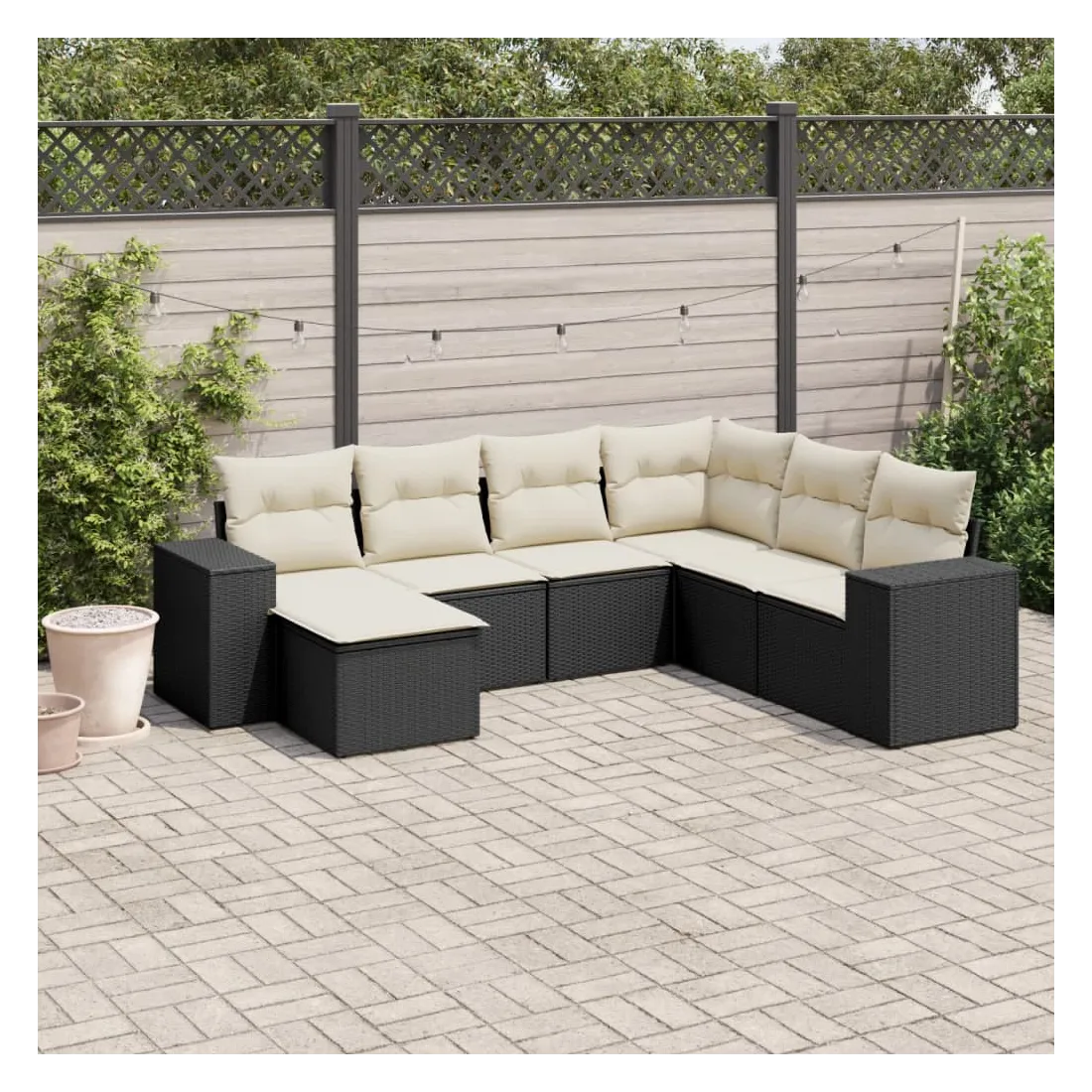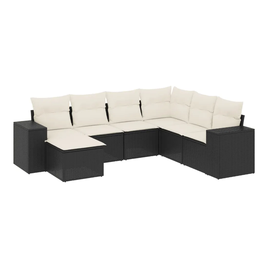 Salon de jardin 7 pcs avec coussins noir résine tressée