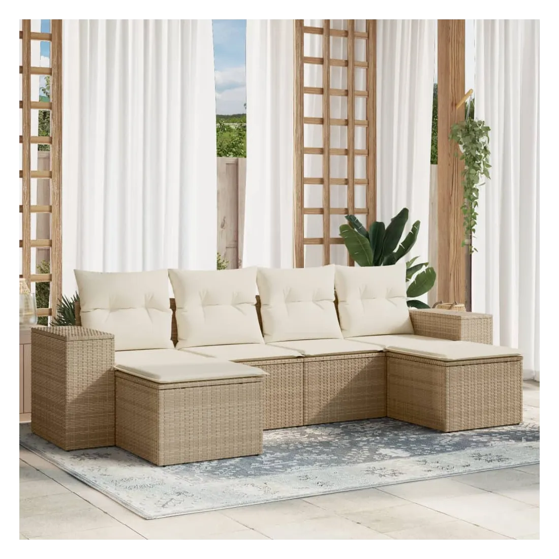 Cet ensemble de canapés de jardin est le complément parfait de votre arrière-cour, terrasse ou patio, offrant un espace confortable et accueillant pour discuter avec la famille et les amis ou simplement se détendre et profiter de l'extérieur. Matériau durable : la résine tressée, également connue sous le nom de poly rotin, est un matériau synthétique solide et nécessitant peu d'entretien qui ressemble au rotin naturel. Il est léger, facile à nettoyer et couramment utilisé pour les meubles d'extérieur en raison de sa durabilité et de ses propriétés de résistance aux intempéries.Fonction de rangement avec sac résistant à l'eau : le mobilier de jardin dispose d'un espace de rangement sous l'assise, complété par un sac résistant à l'eau pour ranger coussins, jouets et autres objets. Le sac intérieur peut être solidement fixé au mobilier d'extérieur grâce à des attaches auto-agrippantes pour plus de stabilité.Housse amovible et lavable : ces coussins de siège sont dotés de housses amovibles pour un lavage et un entretien faciles.Conception modulaire : cet ensemble de meubles d'extérieur a une conception modulaire, ce qui le rend complètement flexible et facile à déplacer, afin que vous puissiez créer un agencement de meubles d'extérieur personnalisé. Bon à savoir :Pour que vos meubles d'extérieur restent beaux, nous vous recommandons de les protéger avec une housse imperméable.