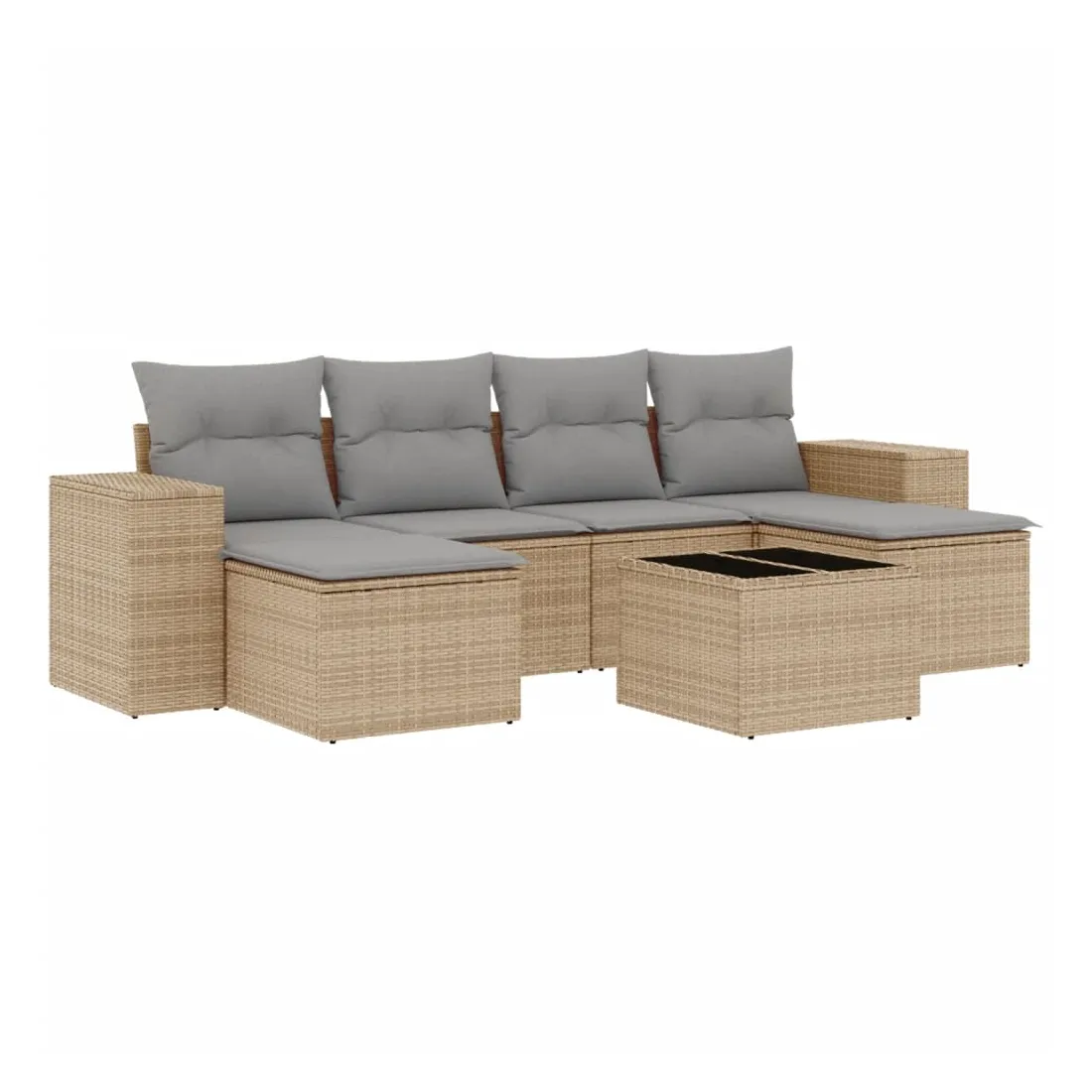 Cet ensemble de canapés de jardin est le complément parfait de votre arrière-cour, terrasse ou patio, offrant un espace confortable et accueillant pour discuter avec la famille et les amis ou simplement se détendre et profiter de l'extérieur. Matériau durable : la résine tressée, également connue sous le nom de poly rotin, est un matériau synthétique solide et nécessitant peu d'entretien qui ressemble au rotin naturel. Il est léger, facile à nettoyer et couramment utilisé pour les meubles d'extérieur en raison de sa durabilité et de ses propriétés de résistance aux intempéries.Fonction de rangement avec sac résistant à l'eau : le mobilier de jardin dispose d'un espace de rangement sous l'assise, complété par un sac résistant à l'eau pour ranger coussins, jouets et autres objets. Le sac intérieur peut être solidement fixé au mobilier d'extérieur grâce à des attaches auto-agrippantes pour plus de stabilité.Dessus en verre : le dessus de la table d'extérieur est fabriqué en verre trempé solide et durable, ce qui le rend facile à nettoyer avec un chiffon humide et ajoute une touche d'élégance à votre espace extérieur.Housse amovible et lavable : ces coussins de siège sont dotés de housses amovibles pour un lavage et un entretien faciles.Conception modulaire : cet ensemble de meubles d'extérieur a une conception modulaire, ce qui le rend complètement flexible et facile à déplacer, afin que vous puissiez créer un agencement de meubles d'extérieur personnalisé. Bon à savoir :Pour que vos meubles d'extérieur restent beaux, nous vous recommandons de les protéger avec une housse imperméable.