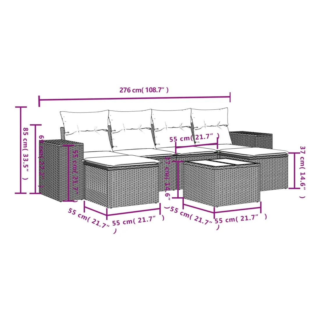 - Dimensions : 55 x 55 x 37 cm (L x l x H)
