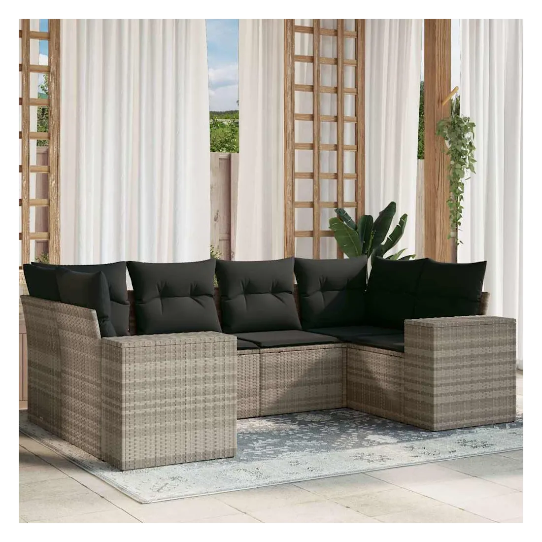 Cet ensemble de canapés de jardin est le complément parfait de votre arrière-cour, terrasse ou patio, offrant un espace confortable et accueillant pour discuter avec la famille et les amis ou simplement se détendre et profiter de l'extérieur. Matériau durable : la résine tressée, également connue sous le nom de poly rotin, est un matériau synthétique solide et nécessitant peu d'entretien qui ressemble au rotin naturel. Il est léger, facile à nettoyer et couramment utilisé pour les meubles d'extérieur en raison de sa durabilité et de ses propriétés de résistance aux intempéries.Fonction de rangement avec sac résistant à l'eau : le mobilier de jardin dispose d'un espace de rangement sous l'assise, complété par un sac résistant à l'eau pour ranger coussins, jouets et autres objets. Le sac intérieur peut être solidement fixé au mobilier d'extérieur grâce à des attaches auto-agrippantes pour plus de stabilité.Housse amovible et lavable : ces coussins de siège sont dotés de housses amovibles pour un lavage et un entretien faciles.Conception modulaire : cet ensemble de meubles d'extérieur a une conception modulaire, ce qui le rend complètement flexible et facile à déplacer, afin que vous puissiez créer un agencement de meubles d'extérieur personnalisé. Bon à savoir :Pour que vos meubles d'extérieur restent beaux, nous vous recommandons de les protéger avec une housse imperméable.