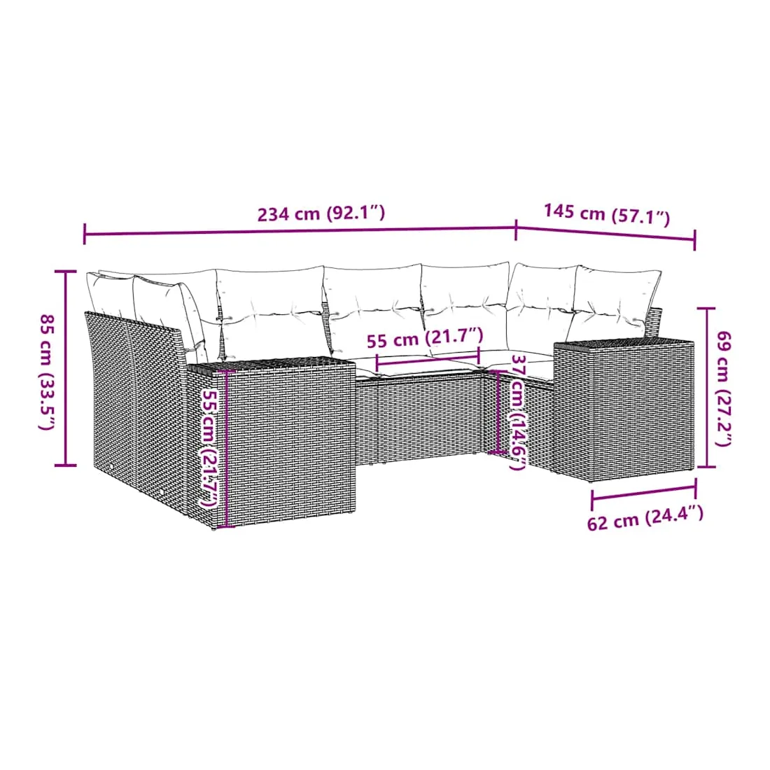 - Dimensions du coussin de dossier : 55 x 45 x 13 cm (L x l x é)