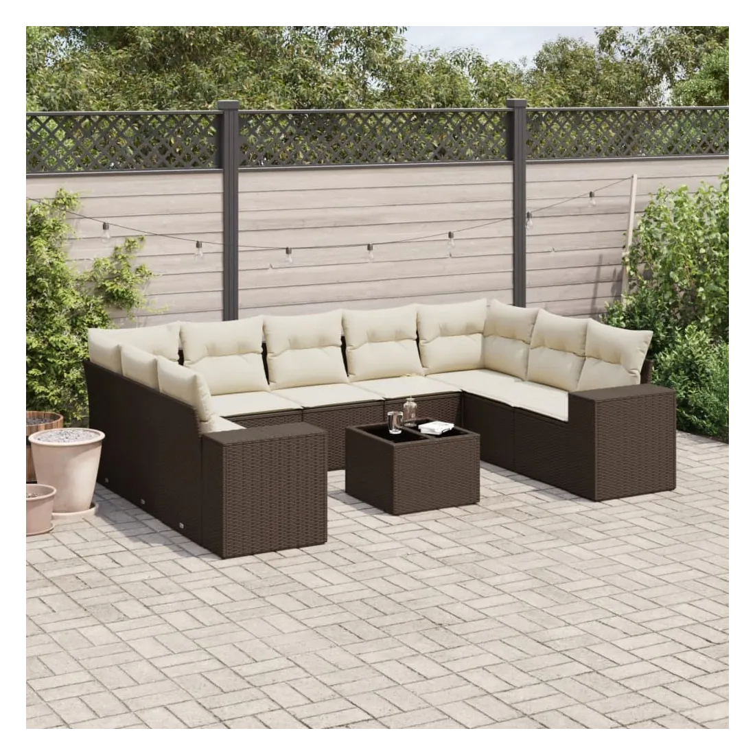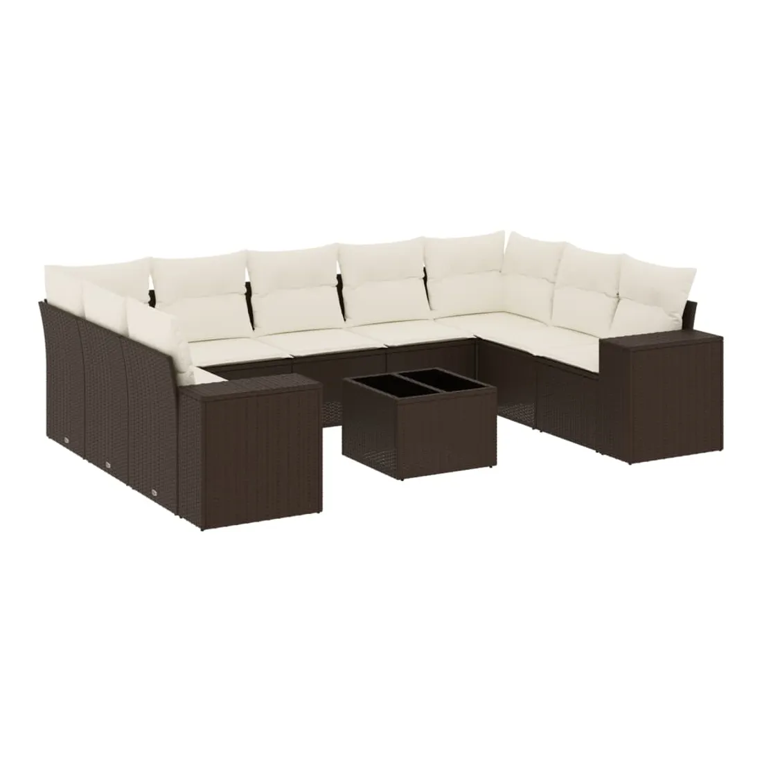 Salon de jardin 10 pcs avec coussins marron résine tressée