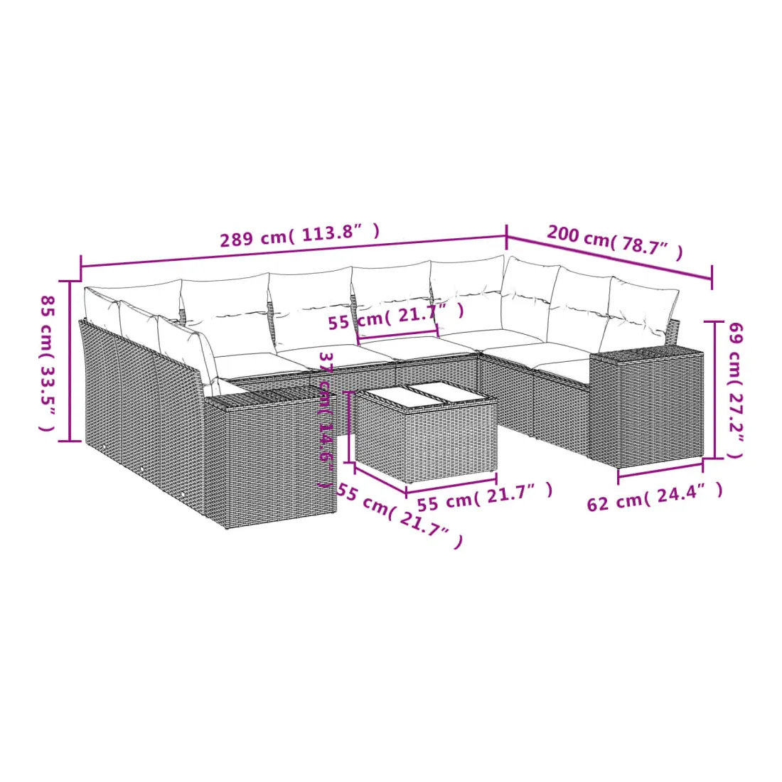 • 9 x coussin d'assise avec housse amovible et lavable