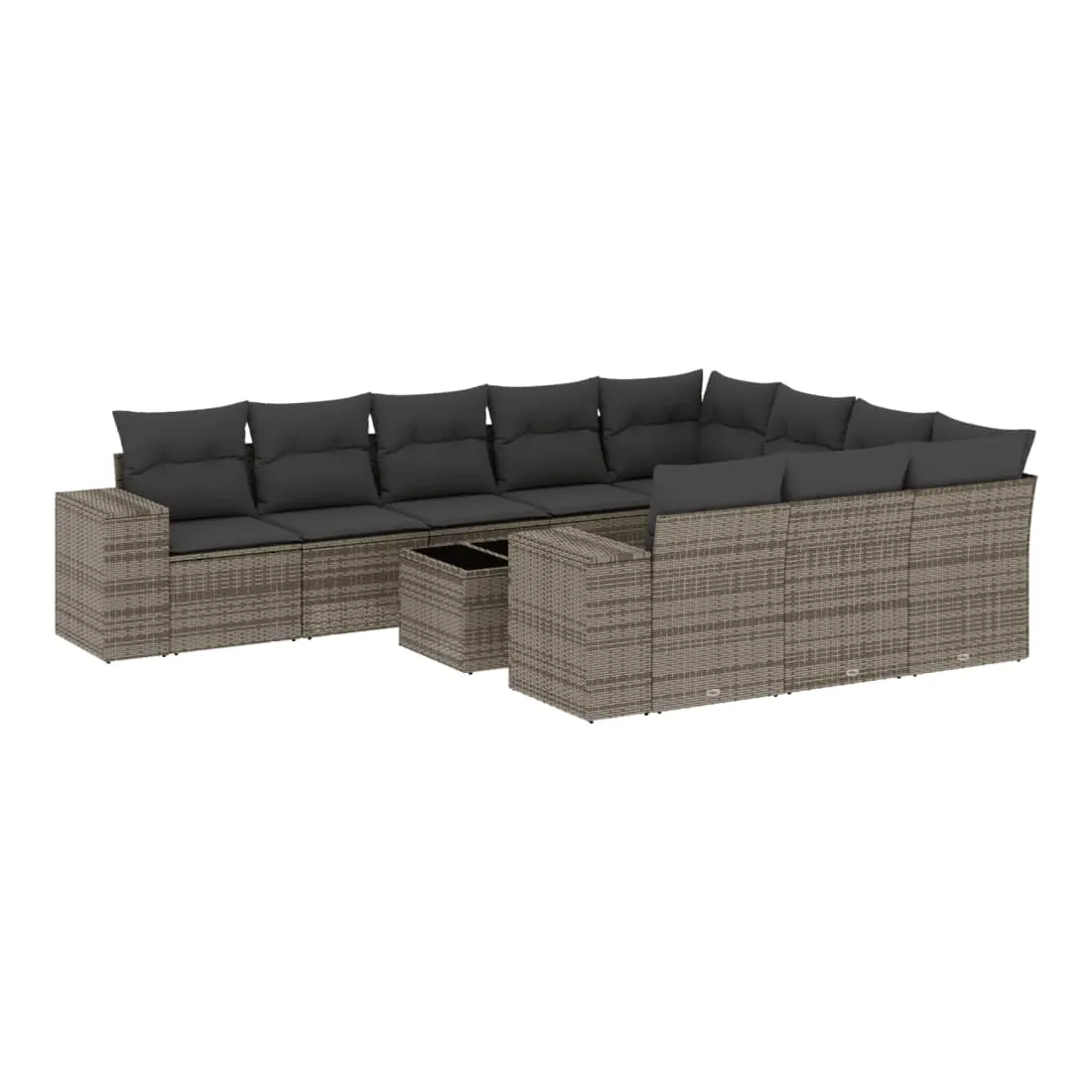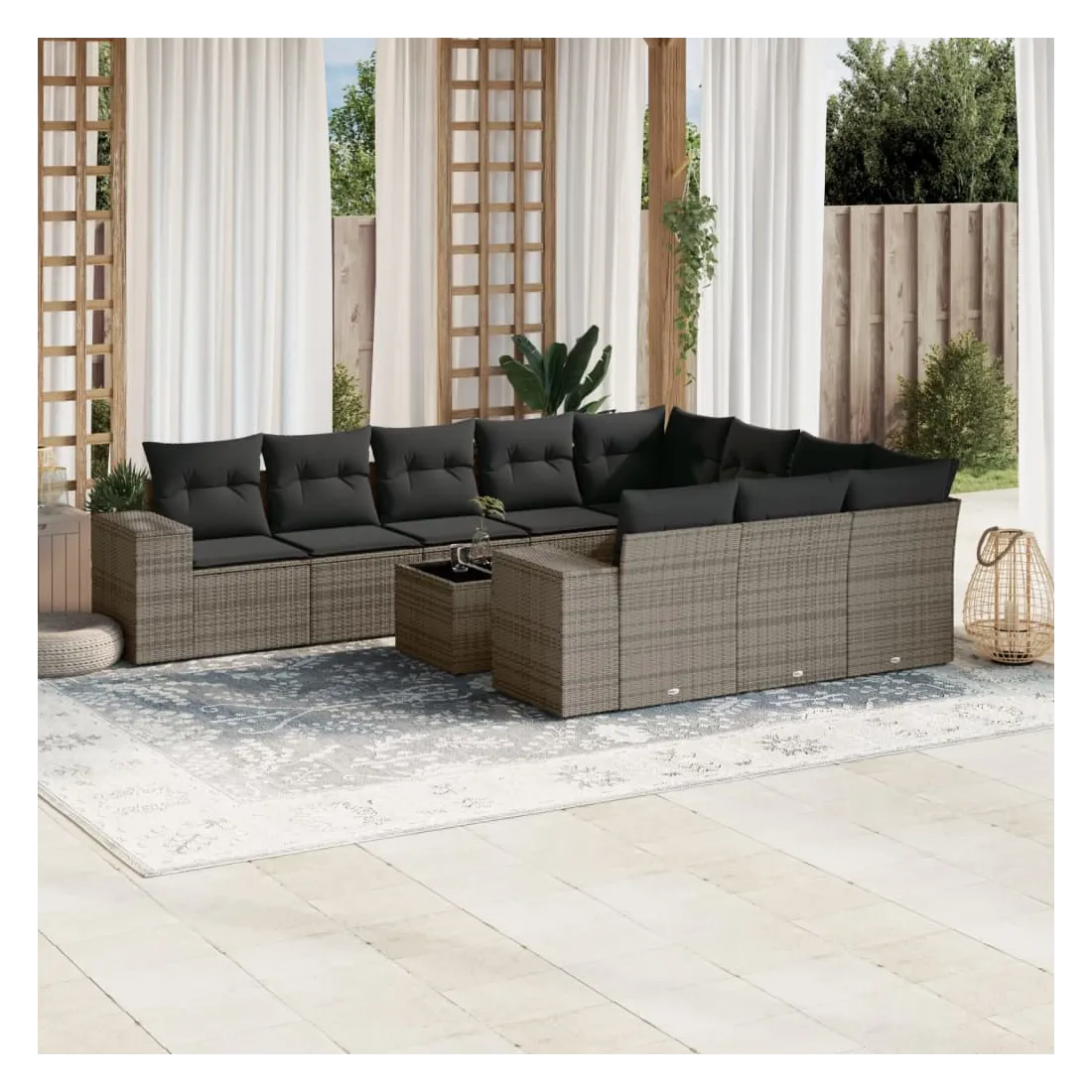 Salon de jardin 11 pcs avec coussins gris résine tressée