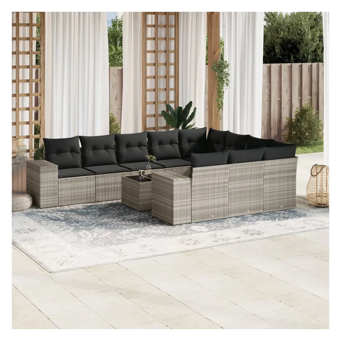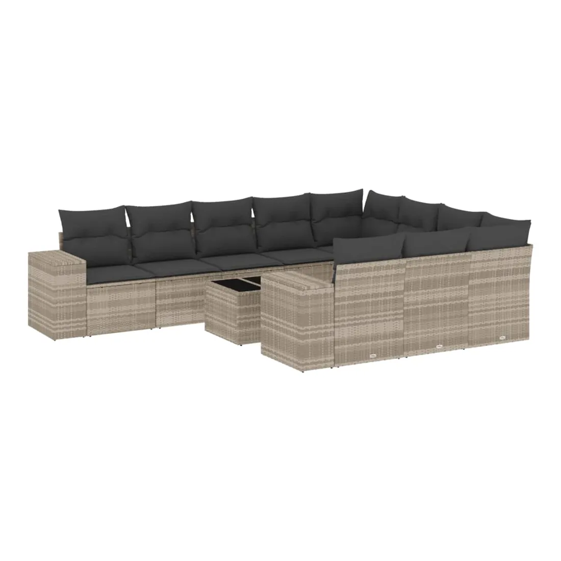 Salon de jardin 11 pcs avec coussins gris clair résine tressée