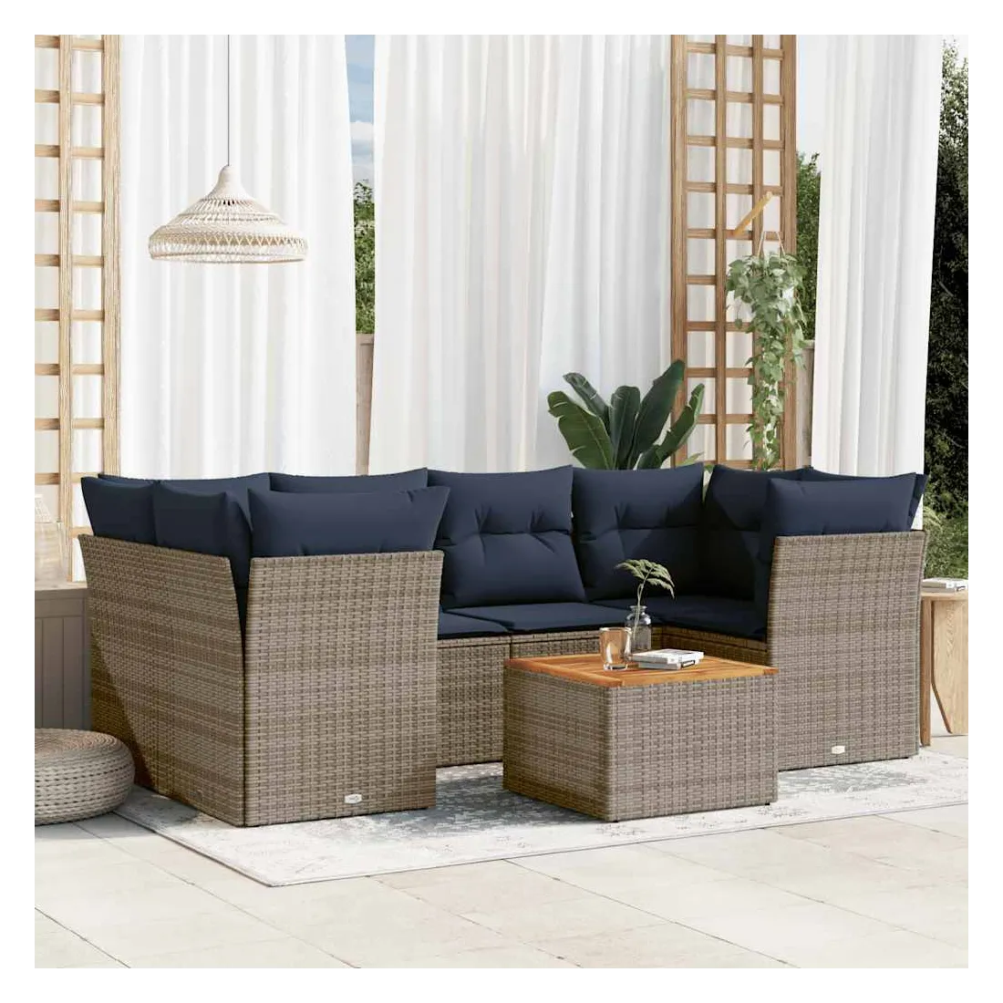 Cet ensemble de canapés de jardin est le complément parfait de votre arrière-cour, terrasse ou patio, offrant un espace confortable et accueillant pour discuter avec la famille et les amis ou simplement se détendre et profiter de l'extérieur. Matériau durable : la résine tressée, également connue sous le nom de poly rotin, est un matériau synthétique solide et nécessitant peu d'entretien qui ressemble au rotin naturel. Il est léger, facile à nettoyer et couramment utilisé pour les meubles d'extérieur en raison de sa durabilité et de ses propriétés de résistance aux intempéries.Fonction de rangement avec sac résistant à l'eau : chaque siège de jardin dispose d'un espace de rangement sous l'assise, complété par un sac résistant à l'eau pour ranger les coussins, les jouets et d'autres objets. Les sacs intérieurs sont dotés d'un couvercle et peuvent être solidement fixés aux sièges à l'aide de bandes auto-agrippantes pour plus de stabilité.Dessus stable et facile à nettoyer : cette table de jardin a un dessus en bois d'acacia robuste, durable et facile à nettoyer avec un chiffon humide.Housse amovible et lavable : ces coussins de siège sont dotés de housses amovibles pour un lavage et un entretien faciles.Conception modulaire : cet ensemble de meubles d'extérieur a une conception modulaire, ce qui le rend complètement flexible et facile à déplacer, afin que vous puissiez créer un agencement de meubles d'extérieur personnalisé. Bon à savoir :Pour que vos meubles d'extérieur restent beaux, nous vous recommandons de les protéger avec une housse imperméable.