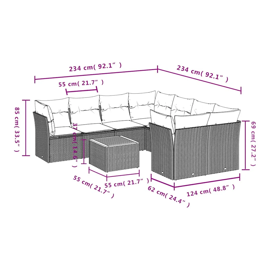 - Dimensions : 55 x 55 x 37 cm (L x l x H)