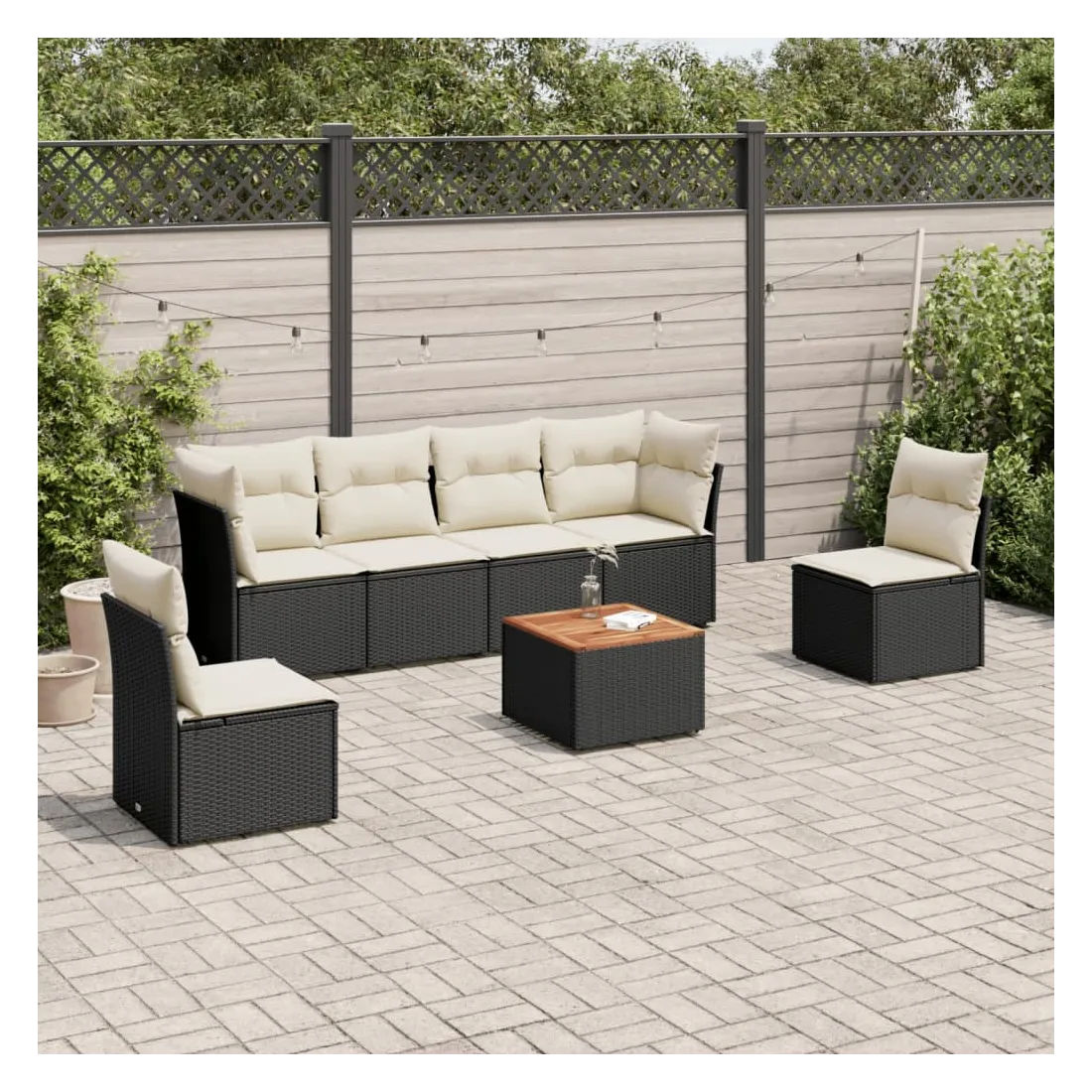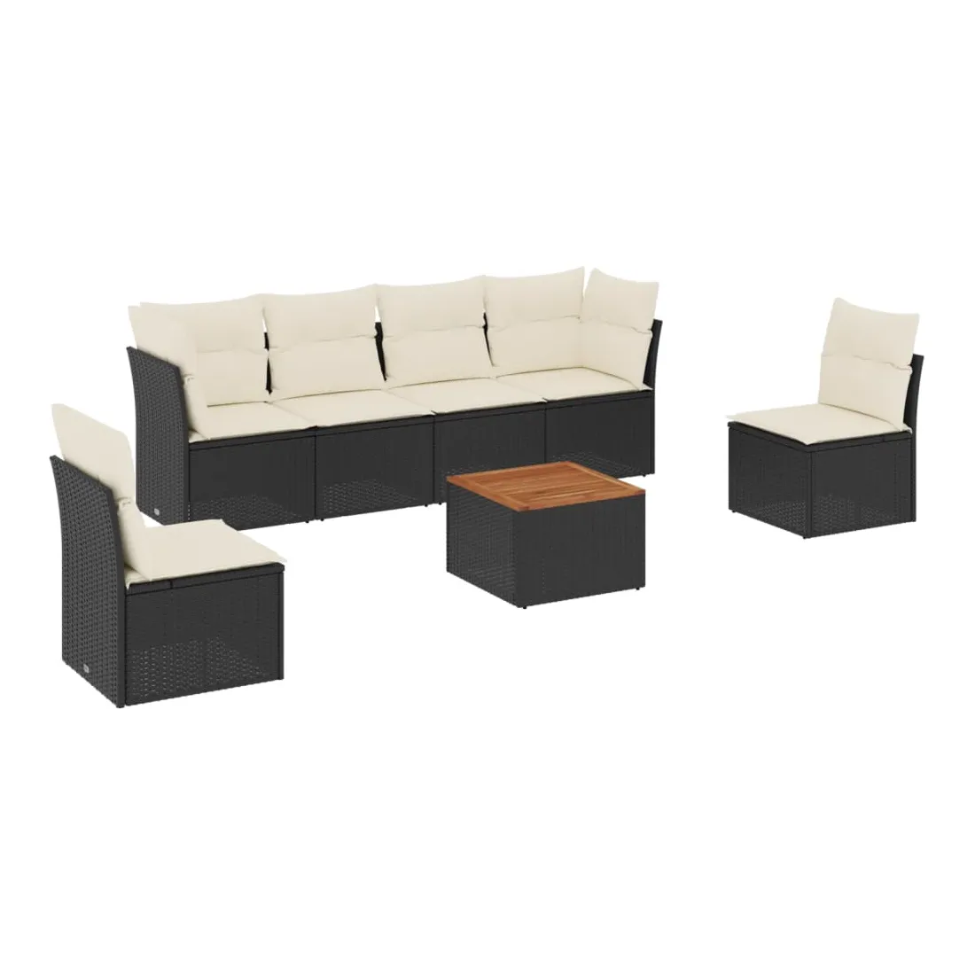 Salon de jardin 7 pcs avec coussins noir résine tressée