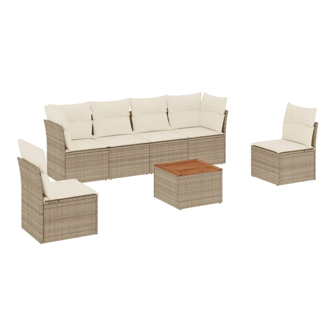 Salon de jardin avec coussins 7 pcs beige résine tressée