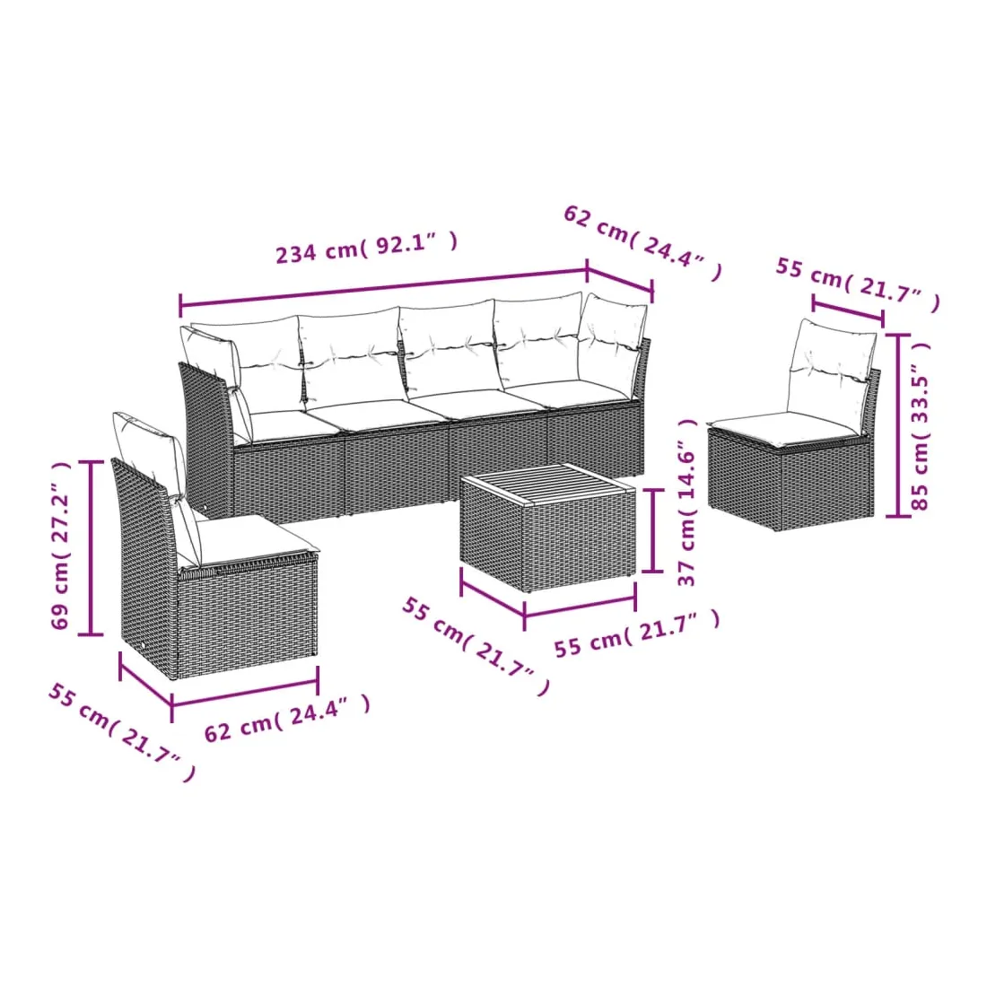 Cet ensemble de canapés de jardin est le complément parfait de votre arrière-cour, terrasse ou patio, offrant un espace confortable et accueillant pour discuter avec la famille et les amis ou simplement se détendre et profiter de l'extérieur. Matériau durable : la résine tressée, également connue sous le nom de poly rotin, est un matériau synthétique solide et nécessitant peu d'entretien qui ressemble au rotin naturel. Il est léger, facile à nettoyer et couramment utilisé pour les meubles d'extérieur en raison de sa durabilité et de ses propriétés de résistance aux intempéries.Fonction de rangement avec sac résistant à l'eau : chaque siège de jardin dispose d'un espace de rangement sous l'assise, complété par un sac résistant à l'eau pour ranger les coussins, les jouets et d'autres objets. Les sacs intérieurs sont dotés d'un couvercle et peuvent être solidement fixés aux sièges à l'aide de bandes auto-agrippantes pour plus de stabilité.Dessus stable et facile à nettoyer : cette table de jardin a un dessus en bois d'acacia robuste, durable et facile à nettoyer avec un chiffon humide.Housse amovible et lavable : ces coussins de siège sont dotés de housses amovibles pour un lavage et un entretien faciles.Conception modulaire : cet ensemble de meubles d'extérieur a une conception modulaire, ce qui le rend complètement flexible et facile à déplacer, afin que vous puissiez créer un agencement de meubles d'extérieur personnalisé. Bon à savoir :Pour que vos meubles d'extérieur restent beaux, nous vous recommandons de les protéger avec une housse imperméable.