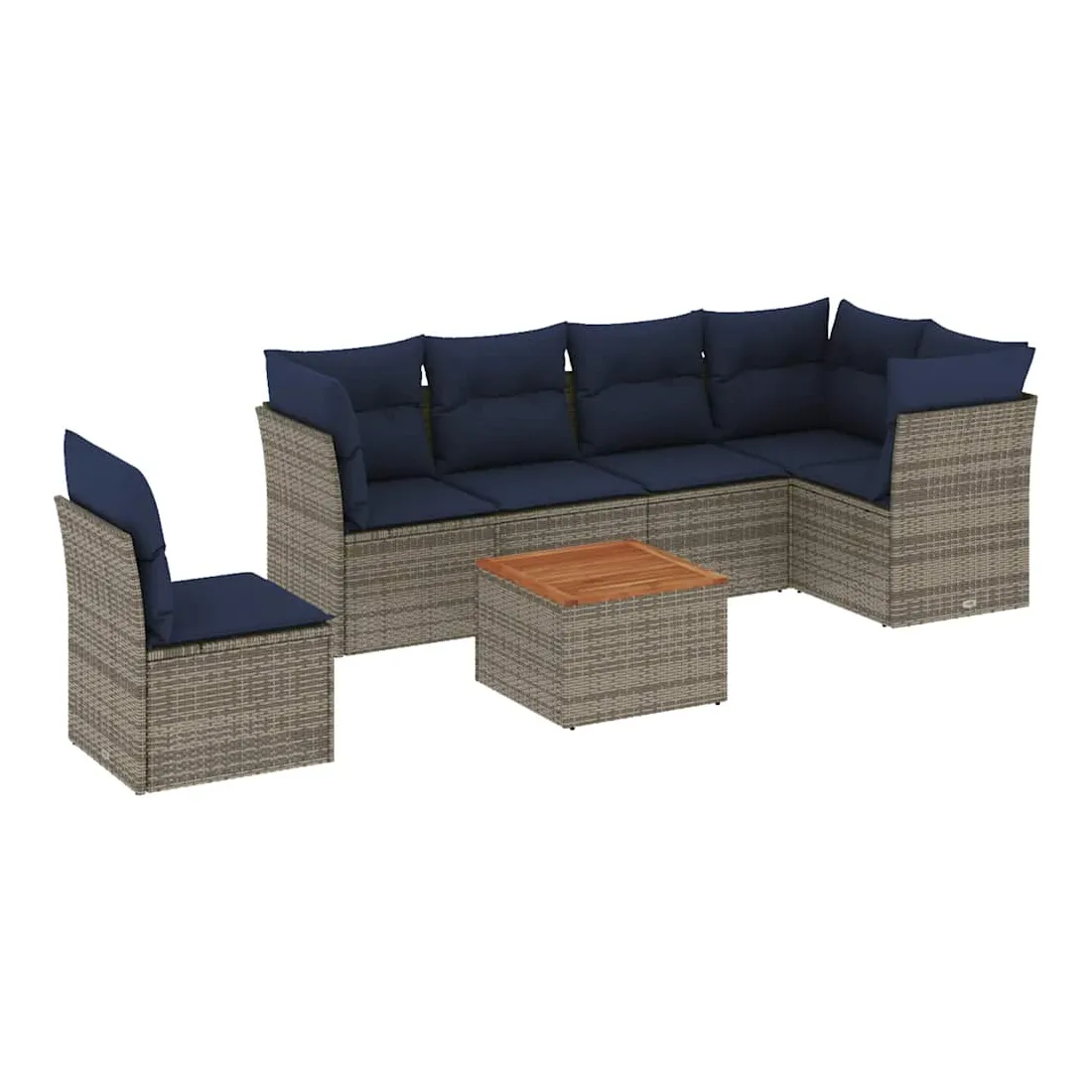 Salon de jardin 7 pcs avec coussins gris résine tressée
