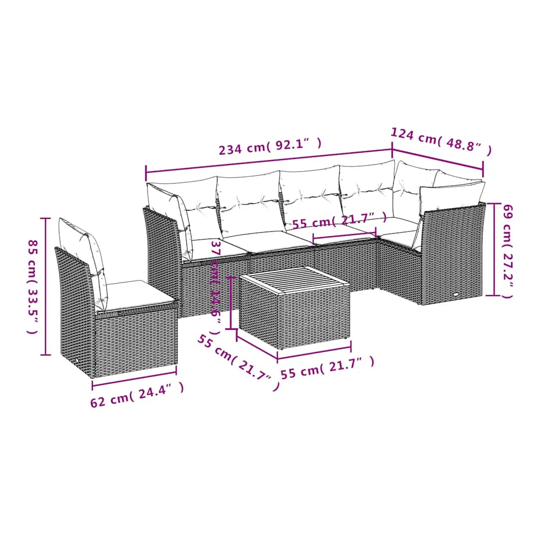 • Dimensions : 55 x 55 x 37 cm (L x l x H)