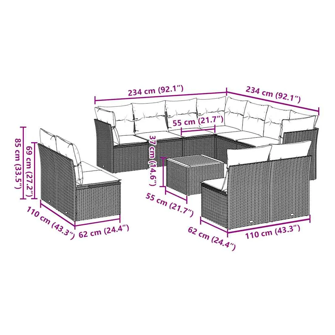 - Dimensions du coussin de siège : 55 x 55 x 3 cm (l x P x é)