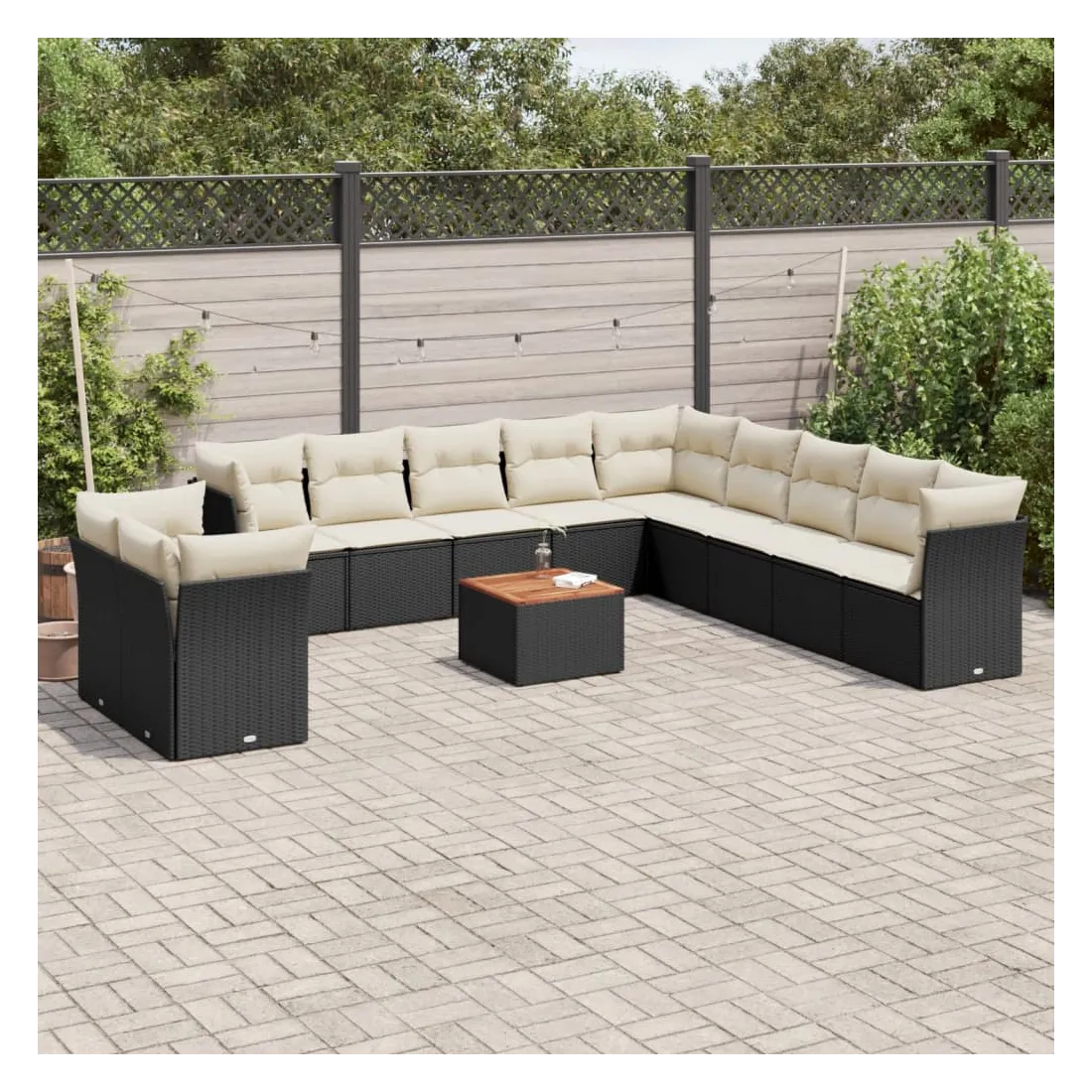 Cet ensemble de canapés de jardin est le complément parfait de votre arrière-cour, terrasse ou patio, offrant un espace confortable et accueillant pour discuter avec la famille et les amis ou simplement se détendre et profiter de l'extérieur. Matériau durable : la résine tressée, également connue sous le nom de poly rotin, est un matériau synthétique solide et nécessitant peu d'entretien qui ressemble au rotin naturel. Il est léger, facile à nettoyer et couramment utilisé pour les meubles d'extérieur en raison de sa durabilité et de ses propriétés de résistance aux intempéries.Fonction de rangement avec sac résistant à l'eau : chaque siège de jardin dispose d'un espace de rangement sous l'assise, complété par un sac résistant à l'eau pour ranger les coussins, les jouets et d'autres objets. Les sacs intérieurs sont dotés d'un couvercle et peuvent être solidement fixés aux sièges à l'aide de bandes auto-agrippantes pour plus de stabilité.Dessus stable et facile à nettoyer : cette table de jardin a un dessus en bois d'acacia robuste, durable et facile à nettoyer avec un chiffon humide.Housse amovible et lavable : ces coussins de siège sont dotés de housses amovibles pour un lavage et un entretien faciles.Conception modulaire : cet ensemble de meubles d'extérieur a une conception modulaire, ce qui le rend complètement flexible et facile à déplacer, afin que vous puissiez créer un agencement de meubles d'extérieur personnalisé. Bon à savoir :Pour que vos meubles d'extérieur restent beaux, nous vous recommandons de les protéger avec une housse imperméable.