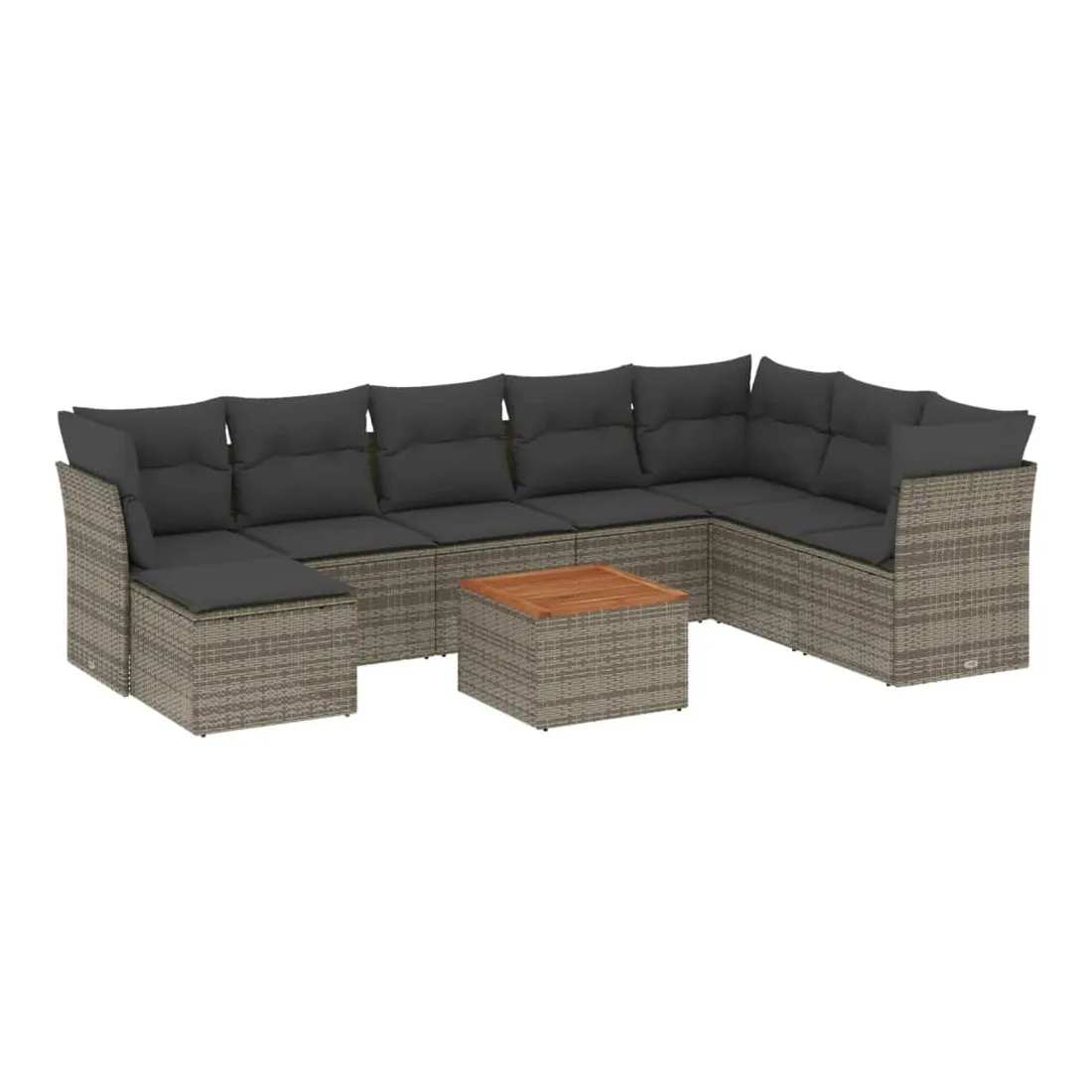 Cet ensemble de canapés de jardin est le complément parfait de votre arrière-cour, terrasse ou patio, offrant un espace confortable et accueillant pour discuter avec la famille et les amis ou simplement se détendre et profiter de l'extérieur. Matériau durable : la résine tressée, également connue sous le nom de poly rotin, est un matériau synthétique solide et nécessitant peu d'entretien qui ressemble au rotin naturel. Il est léger, facile à nettoyer et couramment utilisé pour les meubles d'extérieur en raison de sa durabilité et de ses propriétés de résistance aux intempéries.Fonction de rangement avec sac résistant à l'eau : chaque siège de jardin dispose d'un espace de rangement sous l'assise, complété par un sac résistant à l'eau pour ranger les coussins, les jouets et d'autres objets. Les sacs intérieurs sont dotés d'un couvercle et peuvent être solidement fixés aux sièges à l'aide de bandes auto-agrippantes pour plus de stabilité.Dessus stable et facile à nettoyer : cette table de jardin a un dessus en bois d'acacia robuste, durable et facile à nettoyer avec un chiffon humide.Pouf polyvalent : le tabouret est polyvalent, servant de repose-pieds confortable lorsque vous vous prélassez sur le canapé ou de siège supplémentaire dans votre jardin.Conception modulaire : cet ensemble de meubles d'extérieur a une conception modulaire, ce qui le rend complètement flexible et facile à déplacer, afin que vous puissiez créer un agencement de meubles d'extérieur personnalisé. Bon à savoir :Pour que vos meubles d'extérieur restent beaux, nous vous recommandons de les protéger avec une housse imperméable.