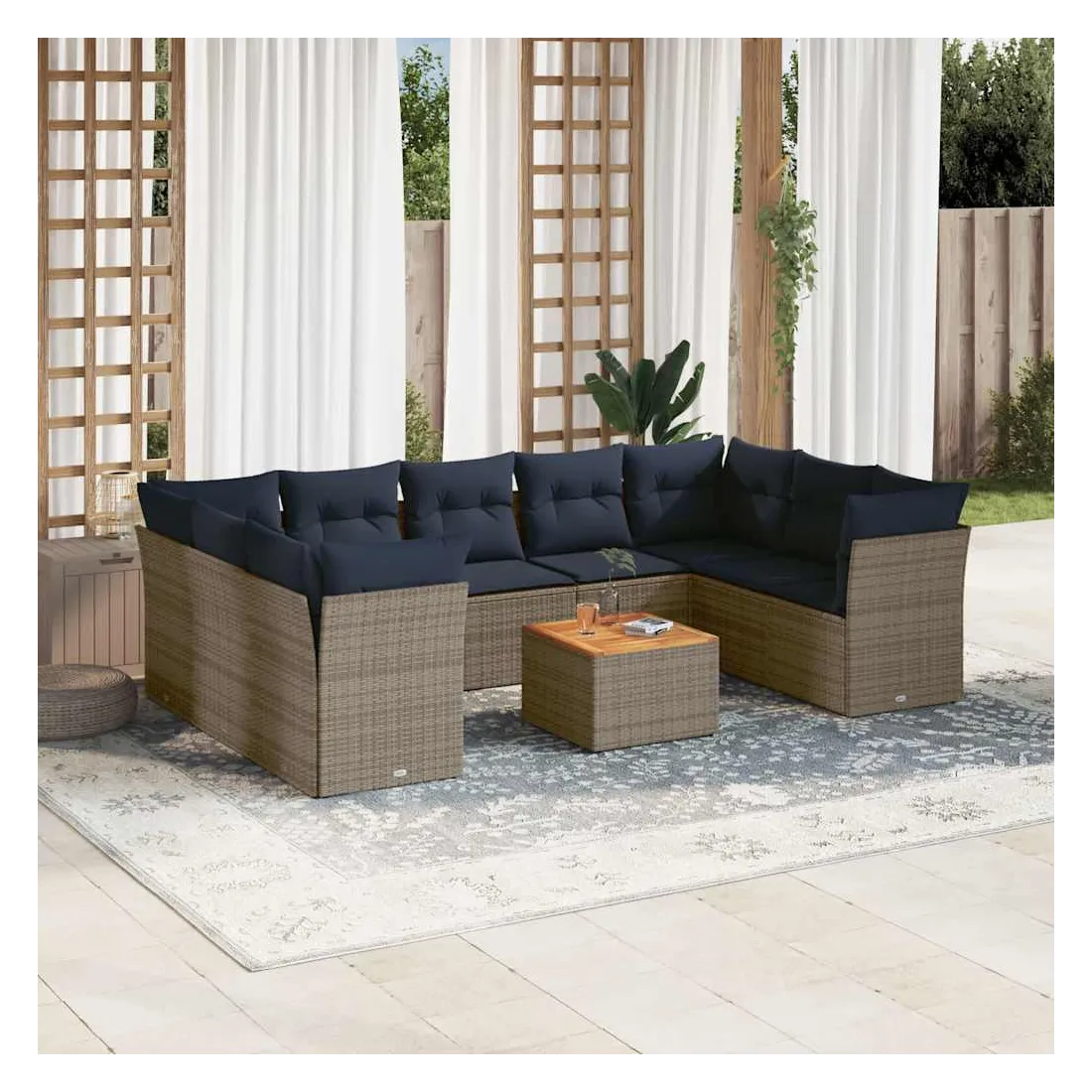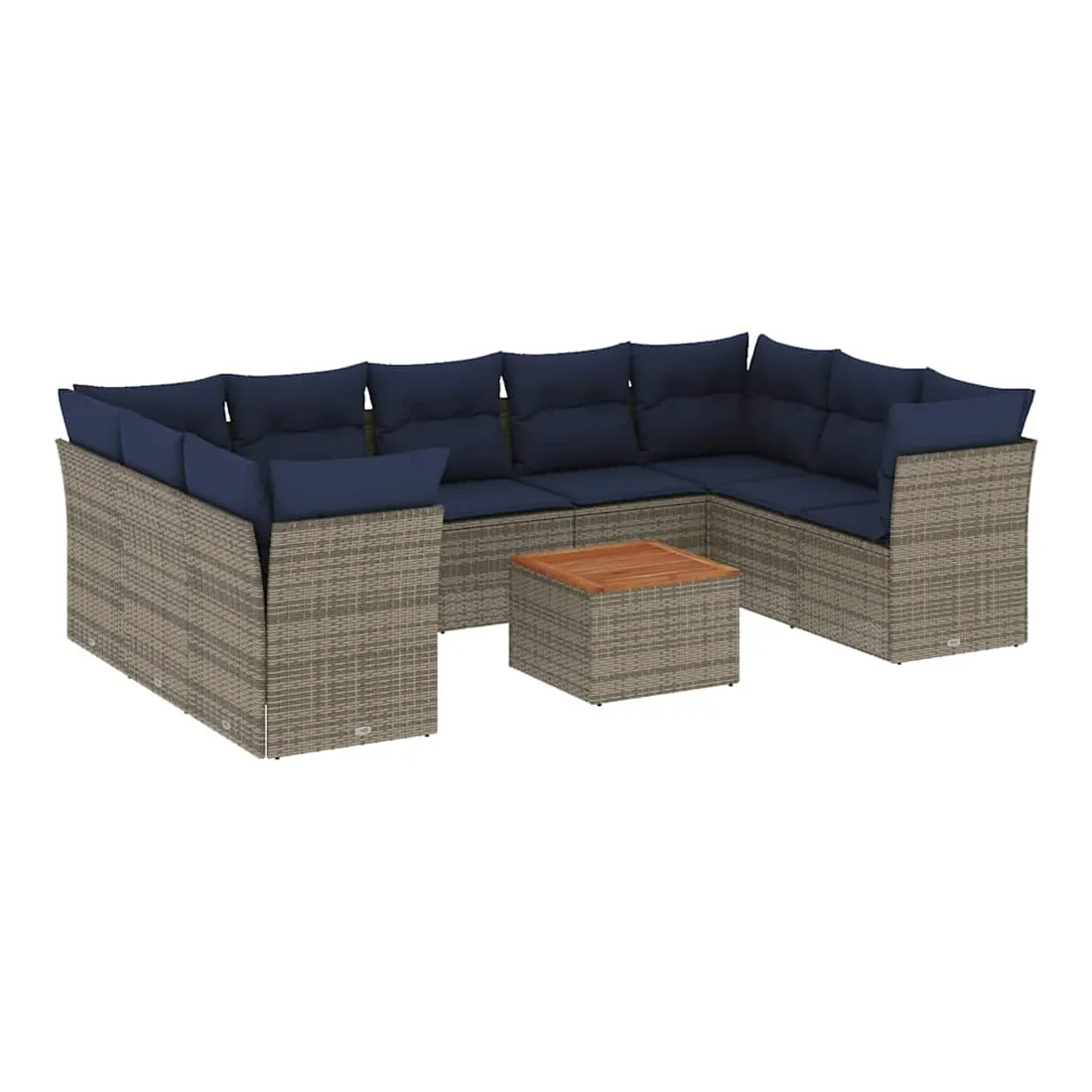 Salon de jardin 10 pcs avec coussins gris résine tressée