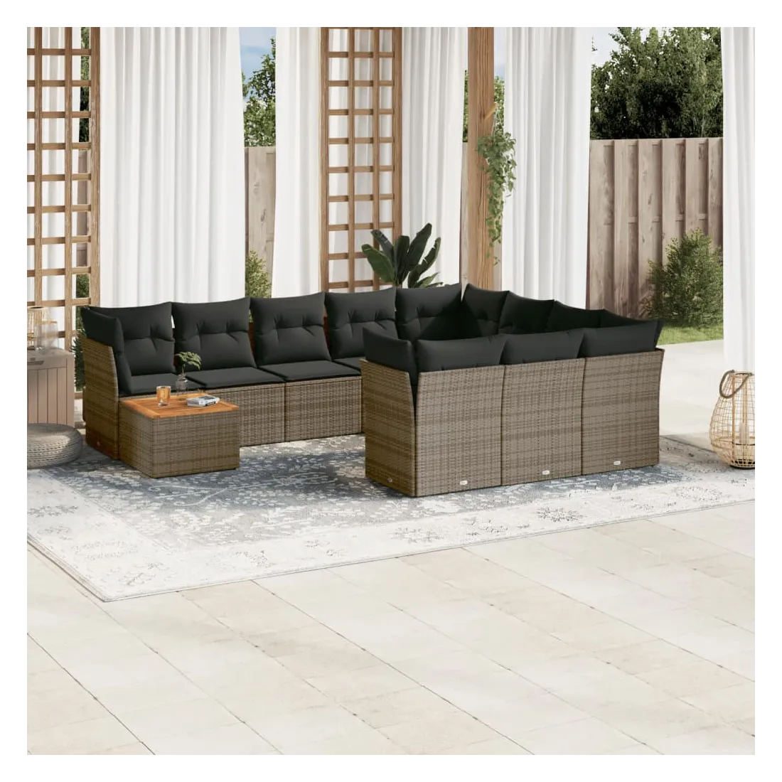 Salon de jardin 11 pcs avec coussins gris résine tressée