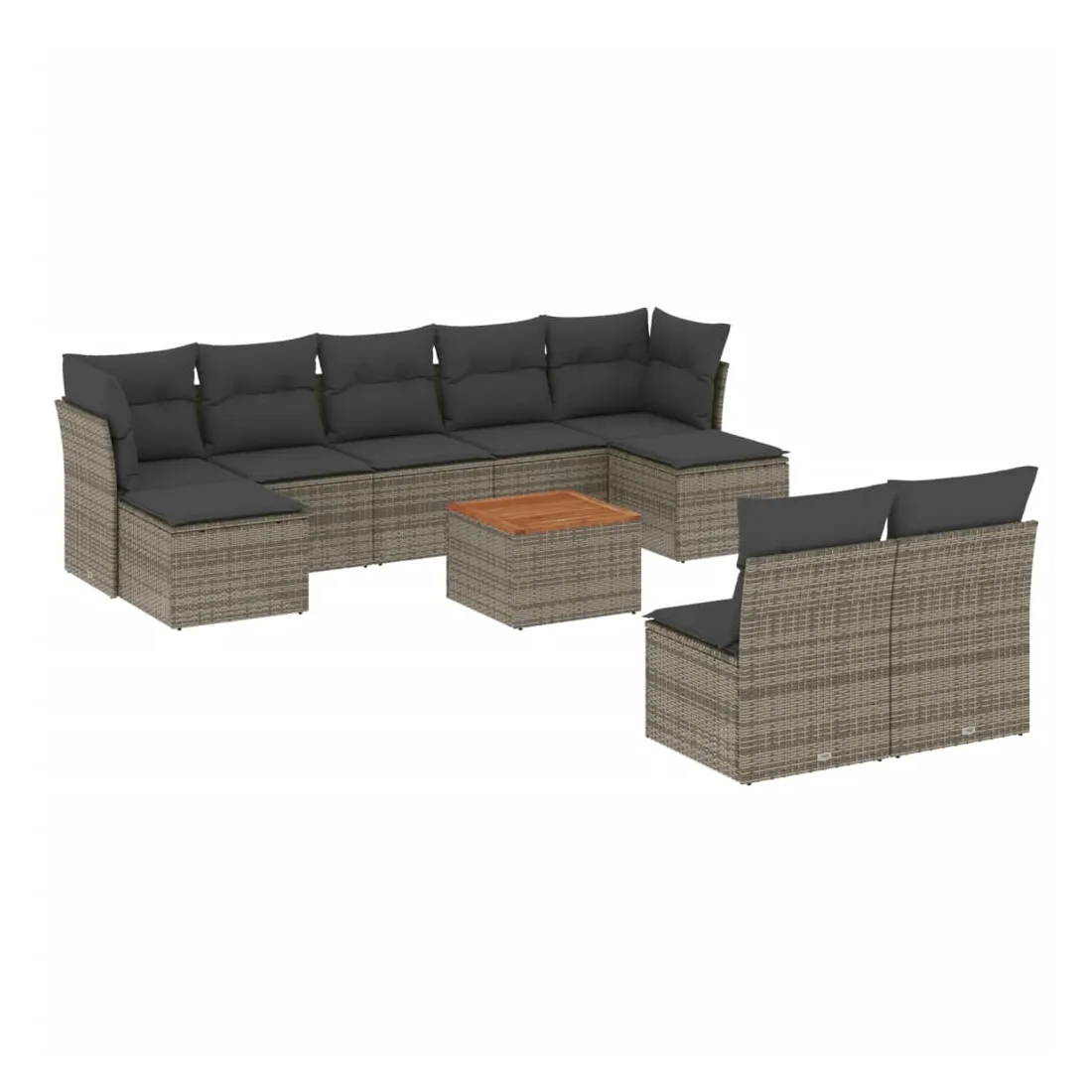 Cet ensemble de canapés de jardin est le complément parfait de votre arrière-cour, terrasse ou patio, offrant un espace confortable et accueillant pour discuter avec la famille et les amis ou simplement se détendre et profiter de l'extérieur. Matériau durable : la résine tressée, également connue sous le nom de poly rotin, est un matériau synthétique solide et nécessitant peu d'entretien qui ressemble au rotin naturel. Il est léger, facile à nettoyer et couramment utilisé pour les meubles d'extérieur en raison de sa durabilité et de ses propriétés de résistance aux intempéries.Fonction de rangement avec sac résistant à l'eau : chaque siège de jardin dispose d'un espace de rangement sous l'assise, complété par un sac résistant à l'eau pour ranger les coussins, les jouets et d'autres objets. Les sacs intérieurs sont dotés d'un couvercle et peuvent être solidement fixés aux sièges à l'aide de bandes auto-agrippantes pour plus de stabilité.Dessus stable et facile à nettoyer : cette table de jardin a un dessus en bois d'acacia robuste, durable et facile à nettoyer avec un chiffon humide.Pouf polyvalent : le tabouret est polyvalent, servant de repose-pieds confortable lorsque vous vous prélassez sur le canapé ou de siège supplémentaire dans votre jardin.Conception modulaire : cet ensemble de meubles d'extérieur a une conception modulaire, ce qui le rend complètement flexible et facile à déplacer, afin que vous puissiez créer un agencement de meubles d'extérieur personnalisé. Bon à savoir :Pour que vos meubles d'extérieur restent beaux, nous vous recommandons de les protéger avec une housse imperméable.