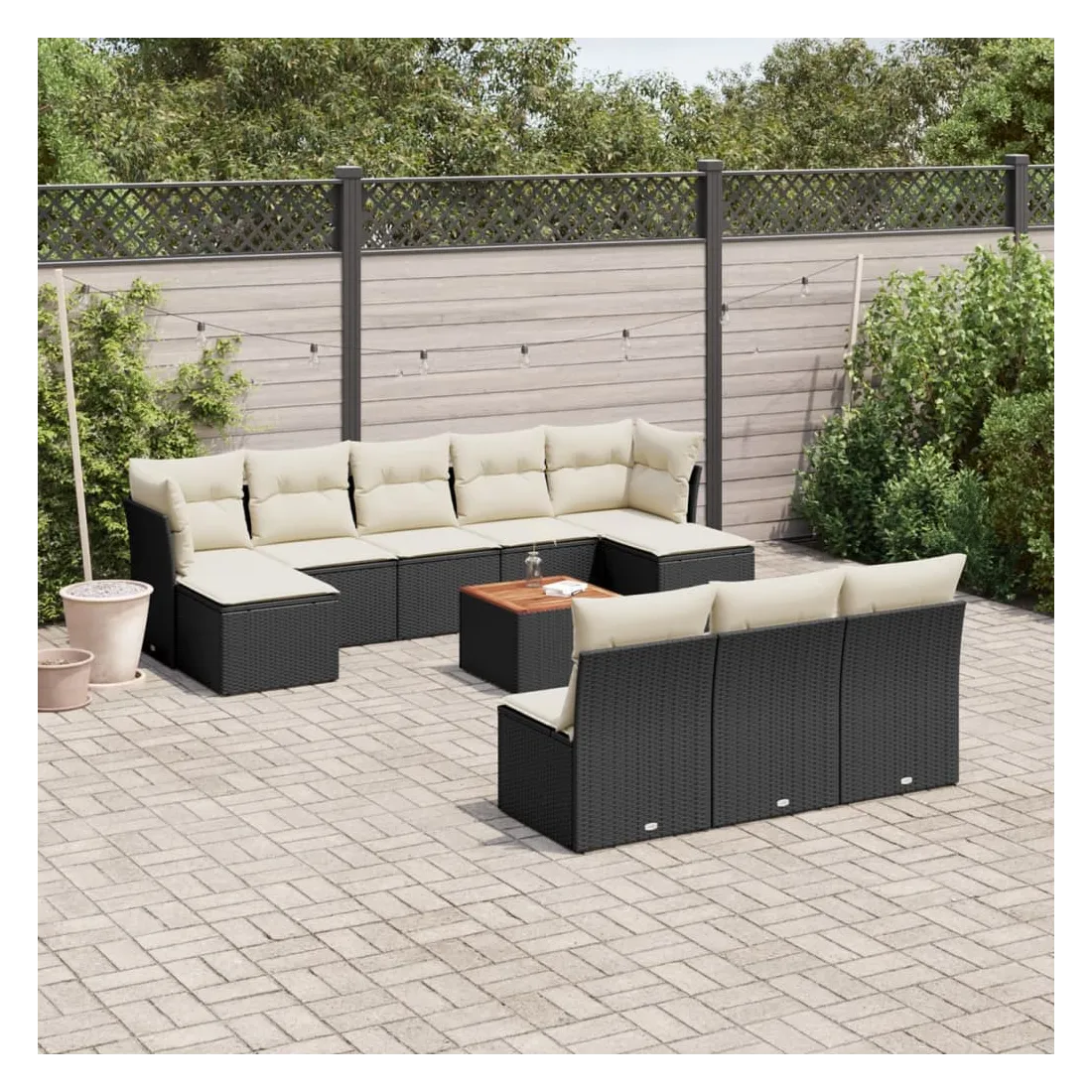 Cet ensemble de canapés de jardin est le complément parfait de votre arrière-cour, terrasse ou patio, offrant un espace confortable et accueillant pour discuter avec la famille et les amis ou simplement se détendre et profiter de l'extérieur. Matériau durable : la résine tressée, également connue sous le nom de poly rotin, est un matériau synthétique solide et nécessitant peu d'entretien qui ressemble au rotin naturel. Il est léger, facile à nettoyer et couramment utilisé pour les meubles d'extérieur en raison de sa durabilité et de ses propriétés de résistance aux intempéries.Fonction de rangement avec sac résistant à l'eau : chaque siège de jardin dispose d'un espace de rangement sous l'assise, complété par un sac résistant à l'eau pour ranger les coussins, les jouets et d'autres objets. Les sacs intérieurs sont dotés d'un couvercle et peuvent être solidement fixés aux sièges à l'aide de bandes auto-agrippantes pour plus de stabilité.Dessus stable et facile à nettoyer : cette table de jardin a un dessus en bois d'acacia robuste, durable et facile à nettoyer avec un chiffon humide.Pouf polyvalent : le tabouret est polyvalent, servant de repose-pieds confortable lorsque vous vous prélassez sur le canapé ou de siège supplémentaire dans votre jardin.Conception modulaire : cet ensemble de meubles d'extérieur a une conception modulaire, ce qui le rend complètement flexible et facile à déplacer, afin que vous puissiez créer un agencement de meubles d'extérieur personnalisé. Bon à savoir :Pour que vos meubles d'extérieur restent beaux, nous vous recommandons de les protéger avec une housse imperméable.