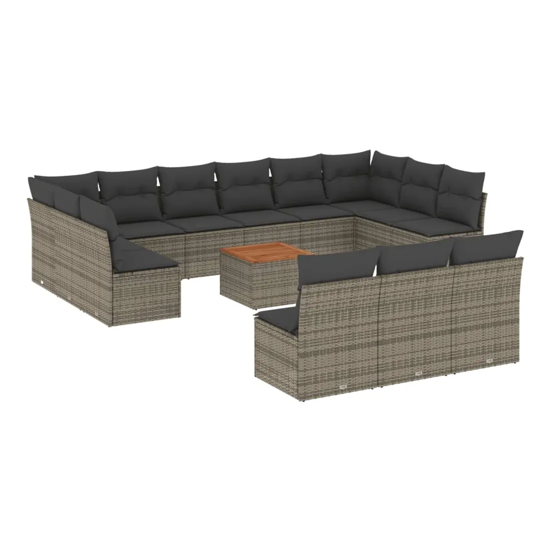 Cet ensemble de canapés de jardin est le complément parfait de votre arrière-cour, terrasse ou patio, offrant un espace confortable et accueillant pour discuter avec la famille et les amis ou simplement se détendre et profiter de l'extérieur. Matériau durable : la résine tressée, également connue sous le nom de poly rotin, est un matériau synthétique solide et nécessitant peu d'entretien qui ressemble au rotin naturel. Il est léger, facile à nettoyer et couramment utilisé pour les meubles d'extérieur en raison de sa durabilité et de ses propriétés de résistance aux intempéries.Fonction de rangement avec sac résistant à l'eau : chaque siège de jardin dispose d'un espace de rangement sous l'assise, complété par un sac résistant à l'eau pour ranger les coussins, les jouets et d'autres objets. Les sacs intérieurs sont dotés d'un couvercle et peuvent être solidement fixés aux sièges à l'aide de bandes auto-agrippantes pour plus de stabilité.Dessus stable et facile à nettoyer : cette table de jardin a un dessus en bois d'acacia robuste, durable et facile à nettoyer avec un chiffon humide.Housse amovible et lavable : ces coussins de siège sont dotés de housses amovibles pour un lavage et un entretien faciles.Conception modulaire : cet ensemble de meubles d'extérieur a une conception modulaire, ce qui le rend complètement flexible et facile à déplacer, afin que vous puissiez créer un agencement de meubles d'extérieur personnalisé. Bon à savoir :Pour que vos meubles d'extérieur restent beaux, nous vous recommandons de les protéger avec une housse imperméable.