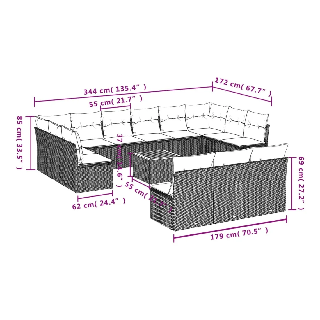 - Dimensions du coussin de dossier : 55 x 45 x 13 cm (L x l x é)