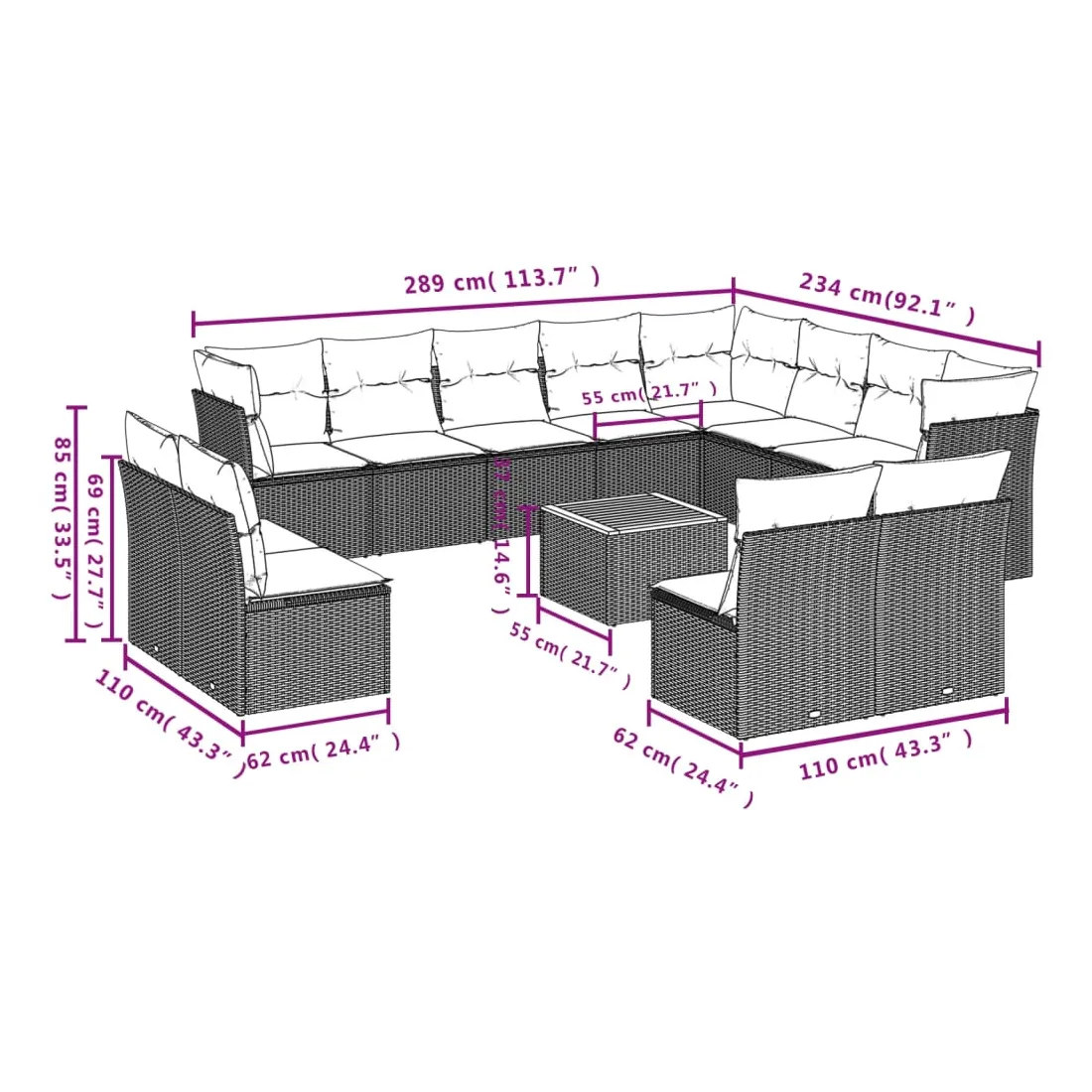 - Dimensions du coussin de dossier : 55 x 45 x 13 cm (L x l x é)