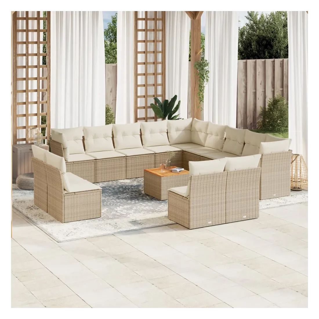 Cet ensemble de canapés de jardin est le complément parfait de votre arrière-cour, terrasse ou patio, offrant un espace confortable et accueillant pour discuter avec la famille et les amis ou simplement se détendre et profiter de l'extérieur. Matériau durable : la résine tressée, également connue sous le nom de poly rotin, est un matériau synthétique solide et nécessitant peu d'entretien qui ressemble au rotin naturel. Il est léger, facile à nettoyer et couramment utilisé pour les meubles d'extérieur en raison de sa durabilité et de ses propriétés de résistance aux intempéries.Fonction de rangement avec sac résistant à l'eau : chaque siège de jardin dispose d'un espace de rangement sous l'assise, complété par un sac résistant à l'eau pour ranger les coussins, les jouets et d'autres objets. Les sacs intérieurs sont dotés d'un couvercle et peuvent être solidement fixés aux sièges à l'aide de bandes auto-agrippantes pour plus de stabilité.Dessus stable et facile à nettoyer : cette table de jardin a un dessus en bois d'acacia robuste, durable et facile à nettoyer avec un chiffon humide.Housse amovible et lavable : ces coussins de siège sont dotés de housses amovibles pour un lavage et un entretien faciles.Conception modulaire : cet ensemble de meubles d'extérieur a une conception modulaire, ce qui le rend complètement flexible et facile à déplacer, afin que vous puissiez créer un agencement de meubles d'extérieur personnalisé. Bon à savoir :Pour que vos meubles d'extérieur restent beaux, nous vous recommandons de les protéger avec une housse imperméable.