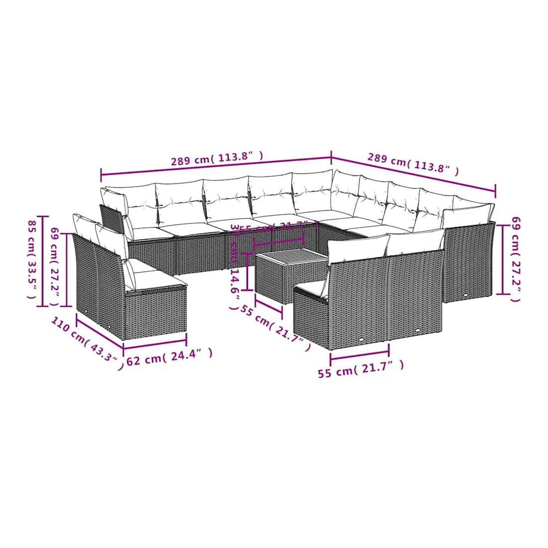 - Dimensions du coussin de siège : 55 x 55 x 3 cm (l x P x é)