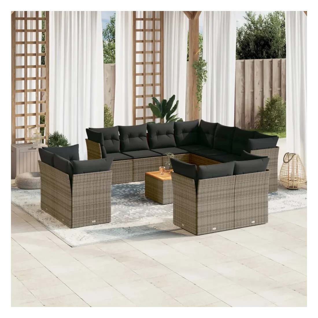 Cet ensemble de canapés de jardin est le complément parfait de votre arrière-cour, terrasse ou patio, offrant un espace confortable et accueillant pour discuter avec la famille et les amis ou simplement se détendre et profiter de l'extérieur. Matériau durable : la résine tressée, également connue sous le nom de poly rotin, est un matériau synthétique solide et nécessitant peu d'entretien qui ressemble au rotin naturel. Il est léger, facile à nettoyer et couramment utilisé pour les meubles d'extérieur en raison de sa durabilité et de ses propriétés de résistance aux intempéries.Fonction de rangement avec sac résistant à l'eau : chaque siège de jardin dispose d'un espace de rangement sous l'assise, complété par un sac résistant à l'eau pour ranger les coussins, les jouets et d'autres objets. Les sacs intérieurs sont dotés d'un couvercle et peuvent être solidement fixés aux sièges à l'aide de bandes auto-agrippantes pour plus de stabilité.Dessus stable et facile à nettoyer : cette table de jardin a un dessus en bois d'acacia robuste, durable et facile à nettoyer avec un chiffon humide.Housse amovible et lavable : ces coussins de siège sont dotés de housses amovibles pour un lavage et un entretien faciles.Conception modulaire : cet ensemble de meubles d'extérieur a une conception modulaire, ce qui le rend complètement flexible et facile à déplacer, afin que vous puissiez créer un agencement de meubles d'extérieur personnalisé. Bon à savoir :Pour que vos meubles d'extérieur restent beaux, nous vous recommandons de les protéger avec une housse imperméable.
