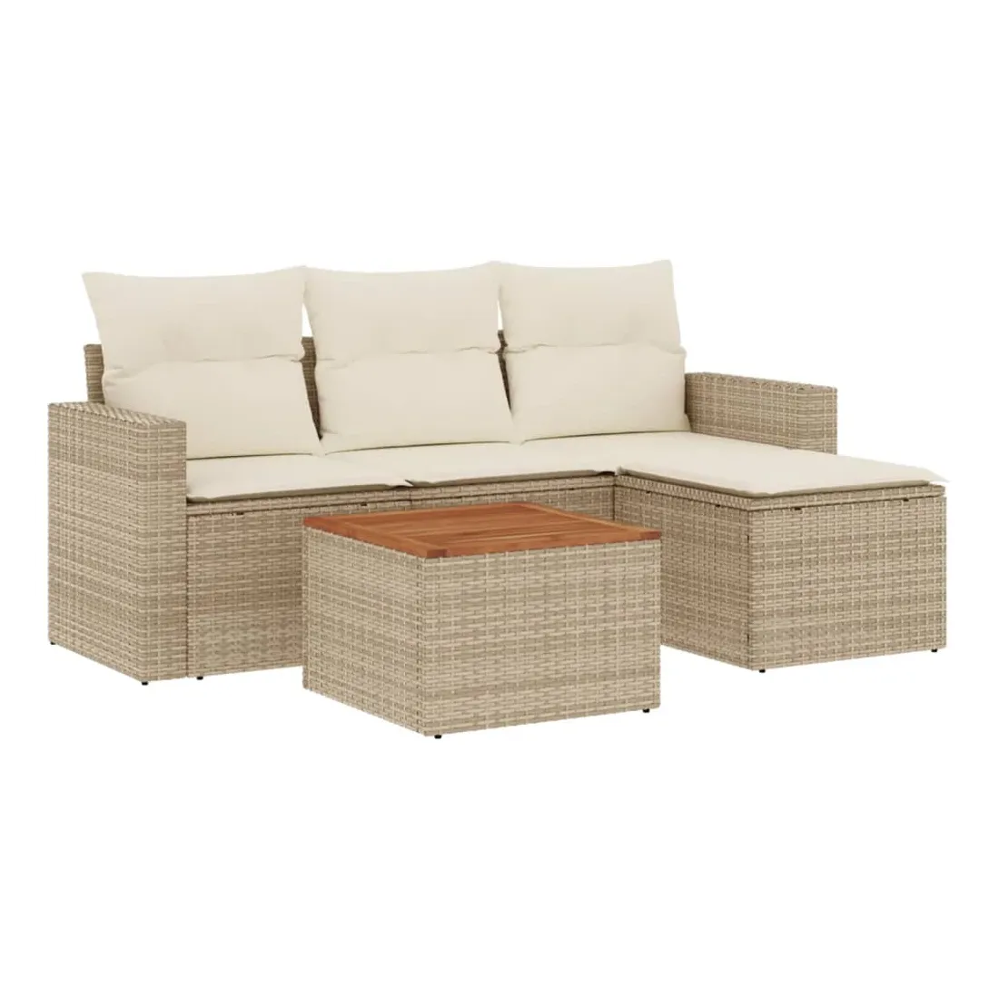 Cet ensemble de canapés de jardin est le complément parfait de votre arrière-cour, terrasse ou patio, offrant un espace confortable et accueillant pour discuter avec la famille et les amis ou simplement se détendre et profiter de l'extérieur. Matériau durable : la résine tressée, également connue sous le nom de poly rotin, est un matériau synthétique solide et nécessitant peu d'entretien qui ressemble au rotin naturel. Il est léger, facile à nettoyer et couramment utilisé pour les meubles d'extérieur en raison de sa durabilité et de ses propriétés de résistance aux intempéries.Fonction de rangement avec sac résistant à l'eau : chaque siège de jardin dispose d'un espace de rangement sous l'assise, complété par un sac résistant à l'eau pour ranger les coussins, les jouets et d'autres objets. Les sacs intérieurs sont dotés d'un couvercle et peuvent être solidement fixés aux sièges à l'aide de bandes auto-agrippantes pour plus de stabilité.Dessus stable et facile à nettoyer : cette table de jardin a un dessus en bois d'acacia robuste, durable et facile à nettoyer avec un chiffon humide.Pouf polyvalent : le tabouret est polyvalent, servant de repose-pieds confortable lorsque vous vous prélassez sur le canapé ou de siège supplémentaire dans votre jardin.Conception modulaire : cet ensemble de meubles d'extérieur a une conception modulaire, ce qui le rend complètement flexible et facile à déplacer, afin que vous puissiez créer un agencement de meubles d'extérieur personnalisé. Bon à savoir :Pour que vos meubles d'extérieur restent beaux, nous vous recommandons de les protéger avec une housse imperméable.
