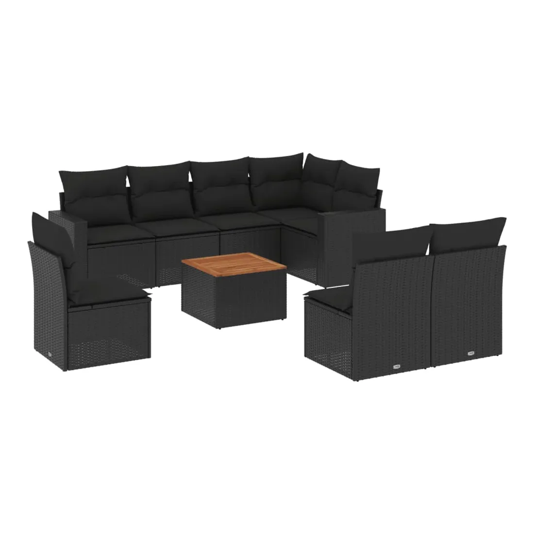 Cet ensemble de canapés de jardin est le complément parfait de votre arrière-cour, terrasse ou patio, offrant un espace confortable et accueillant pour discuter avec la famille et les amis ou simplement se détendre et profiter de l'extérieur. Matériau durable : la résine tressée, également connue sous le nom de poly rotin, est un matériau synthétique solide et nécessitant peu d'entretien qui ressemble au rotin naturel. Il est léger, facile à nettoyer et couramment utilisé pour les meubles d'extérieur en raison de sa durabilité et de ses propriétés de résistance aux intempéries.Fonction de rangement avec sac résistant à l'eau : chaque siège de jardin dispose d'un espace de rangement sous l'assise, complété par un sac résistant à l'eau pour ranger les coussins, les jouets et d'autres objets. Les sacs intérieurs sont dotés d'un couvercle et peuvent être solidement fixés aux sièges à l'aide de bandes auto-agrippantes pour plus de stabilité.Dessus stable et facile à nettoyer : cette table de jardin a un dessus en bois d'acacia robuste, durable et facile à nettoyer avec un chiffon humide.Housse amovible et lavable : ces coussins de siège sont dotés de housses amovibles pour un lavage et un entretien faciles.Conception modulaire : cet ensemble de meubles d'extérieur a une conception modulaire, ce qui le rend complètement flexible et facile à déplacer, afin que vous puissiez créer un agencement de meubles d'extérieur personnalisé. Bon à savoir :Pour que vos meubles d'extérieur restent beaux, nous vous recommandons de les protéger avec une housse imperméable.