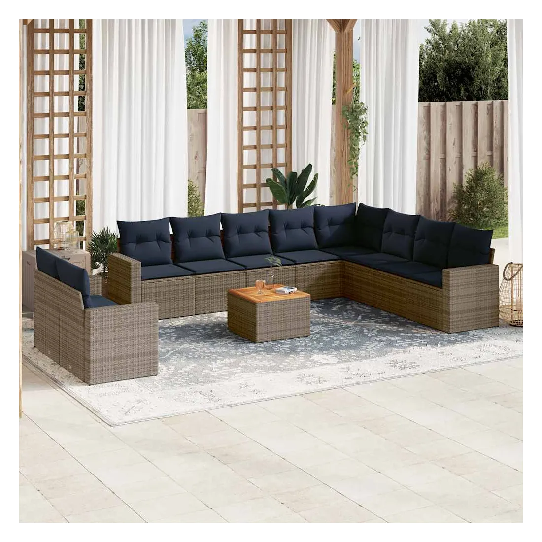 Cet ensemble de canapés de jardin est le complément parfait de votre arrière-cour, terrasse ou patio, offrant un espace confortable et accueillant pour discuter avec la famille et les amis ou simplement se détendre et profiter de l'extérieur. Matériau durable : la résine tressée, également connue sous le nom de poly rotin, est un matériau synthétique solide et nécessitant peu d'entretien qui ressemble au rotin naturel. Il est léger, facile à nettoyer et couramment utilisé pour les meubles d'extérieur en raison de sa durabilité et de ses propriétés de résistance aux intempéries.Fonction de rangement avec sac résistant à l'eau : chaque siège de jardin dispose d'un espace de rangement sous l'assise, complété par un sac résistant à l'eau pour ranger les coussins, les jouets et d'autres objets. Les sacs intérieurs sont dotés d'un couvercle et peuvent être solidement fixés aux sièges à l'aide de bandes auto-agrippantes pour plus de stabilité.Dessus stable et facile à nettoyer : cette table de jardin a un dessus en bois d'acacia robuste, durable et facile à nettoyer avec un chiffon humide.Housse amovible et lavable : ces coussins de siège sont dotés de housses amovibles pour un lavage et un entretien faciles.Conception modulaire : cet ensemble de meubles d'extérieur a une conception modulaire, ce qui le rend complètement flexible et facile à déplacer, afin que vous puissiez créer un agencement de meubles d'extérieur personnalisé. Bon à savoir :Pour que vos meubles d'extérieur restent beaux, nous vous recommandons de les protéger avec une housse imperméable.