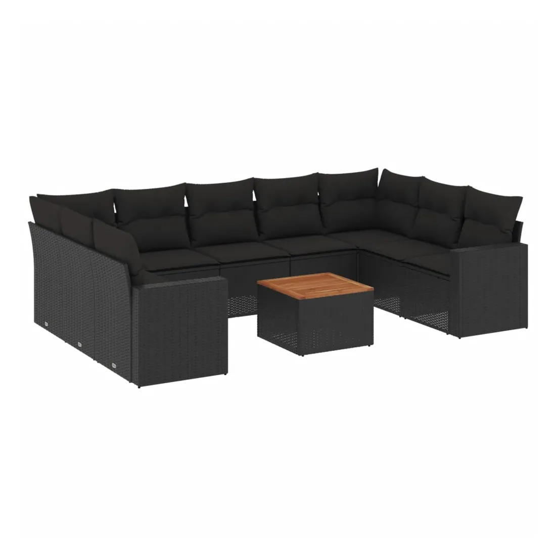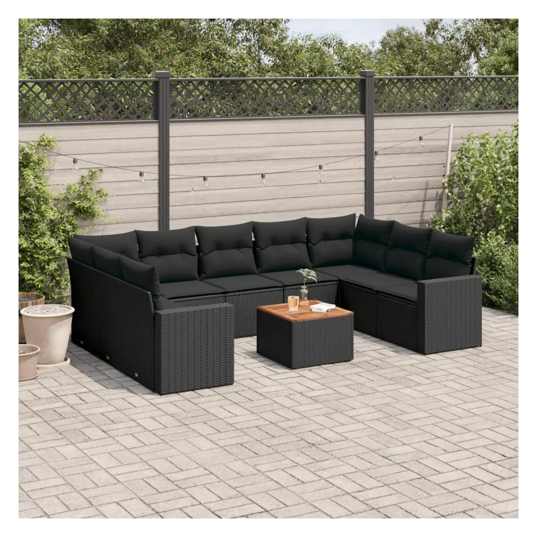 Salon de jardin 10 pcs avec coussins noir résine tressée
