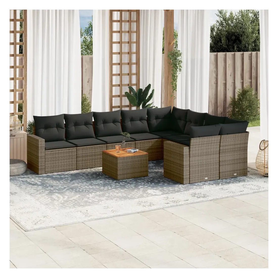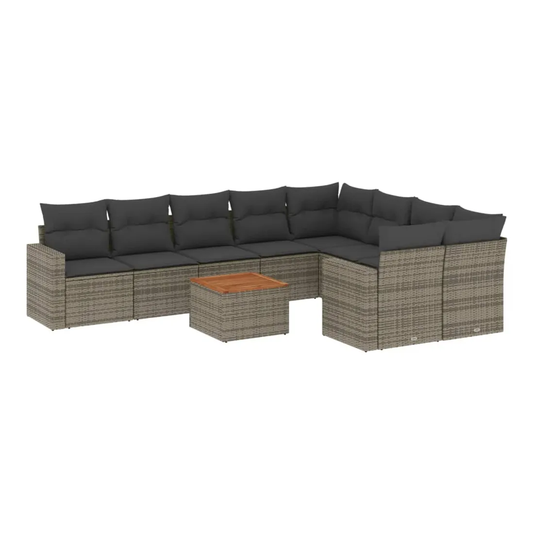 Salon de jardin avec coussins 10 pcs gris résine tressée