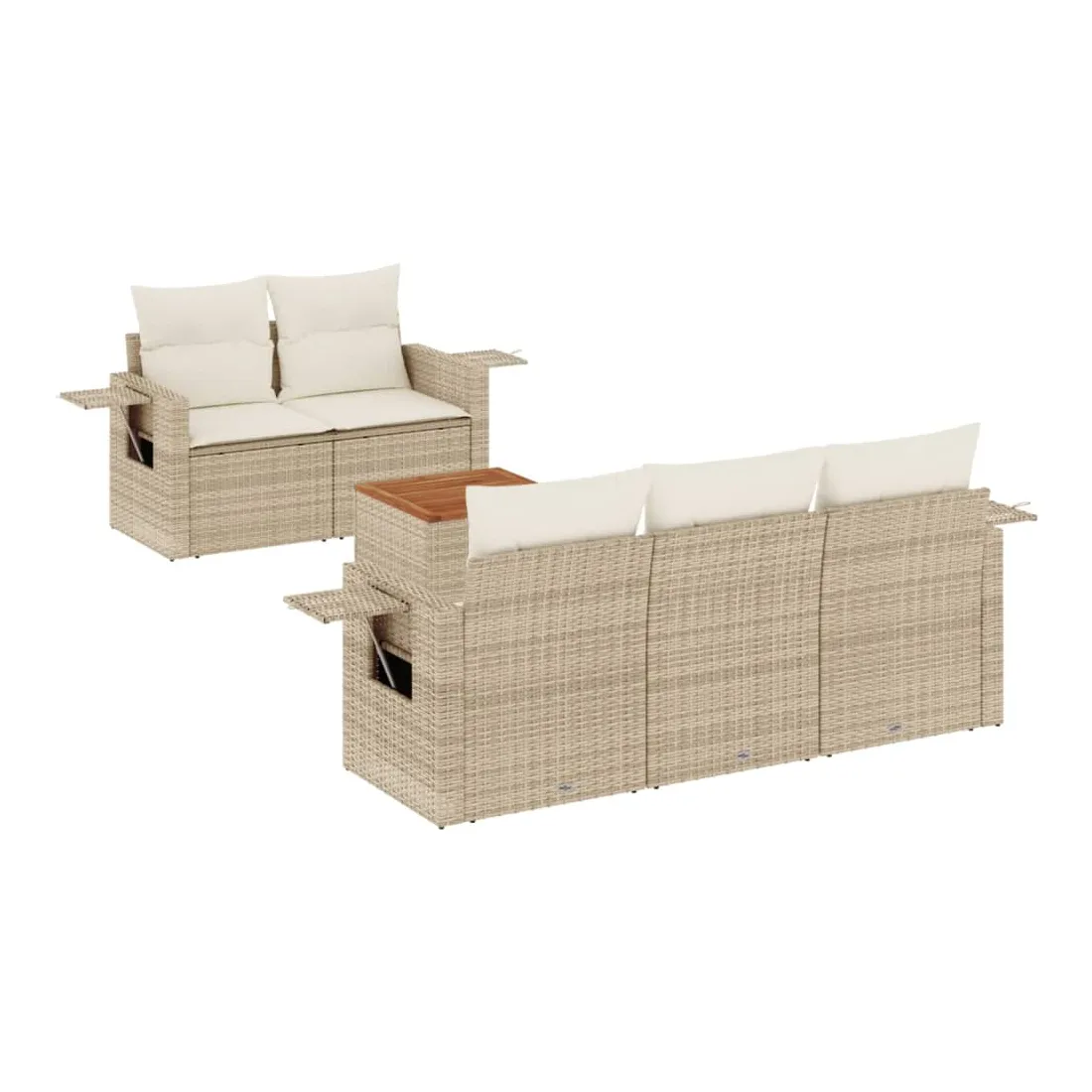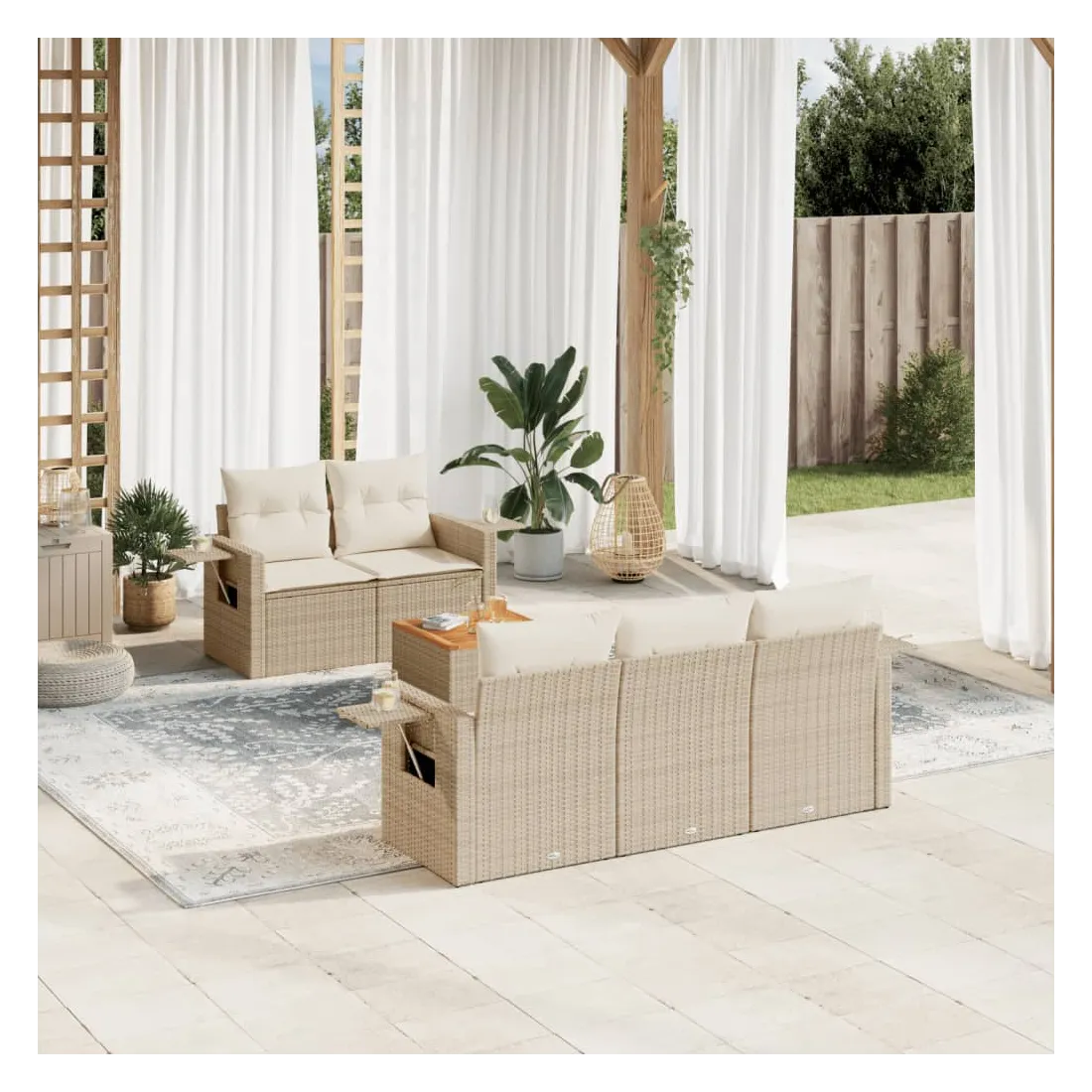 Cet ensemble de canapés de jardin est le complément parfait de votre arrière-cour, terrasse ou patio, offrant un espace confortable et accueillant pour discuter avec la famille et les amis ou simplement se détendre et profiter de l'extérieur. Matériau durable : la résine tressée, également connue sous le nom de poly rotin, est un matériau synthétique solide et nécessitant peu d'entretien qui ressemble au rotin naturel. Il est léger, facile à nettoyer et couramment utilisé pour les meubles d'extérieur en raison de sa durabilité et de ses propriétés de résistance aux intempéries.Fonction de rangement avec sac résistant à l'eau : chaque siège de jardin dispose d'un espace de rangement sous l'assise, complété par un sac résistant à l'eau pour ranger les coussins, les jouets et d'autres objets. Les sacs intérieurs sont dotés d'un couvercle et peuvent être solidement fixés aux sièges à l'aide de bandes auto-agrippantes pour plus de stabilité.Dessus stable et facile à nettoyer : cette table de jardin a un dessus en bois d'acacia robuste, durable et facile à nettoyer avec un chiffon humide.Table d'appoint pratique : ce mobilier d'extérieur comprend des tables d'appoint pliables avec un ressort à gaz sur les accoudoirs, offrant des endroits pratiques pour garder vos essentiels à portée de main.Conception modulaire : cet ensemble de meubles d'extérieur a une conception modulaire, ce qui le rend complètement flexible et facile à déplacer, afin que vous puissiez créer un agencement de meubles d'extérieur personnalisé. Bon à savoir :Pour que vos meubles d'extérieur restent beaux, nous vous recommandons de les protéger avec une housse imperméable.