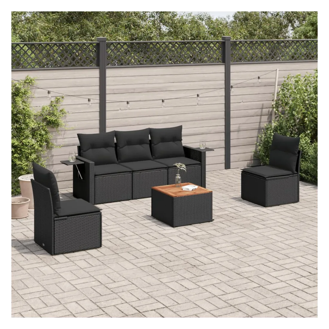 Cet ensemble de canapés de jardin est le complément parfait de votre arrière-cour, terrasse ou patio, offrant un espace confortable et accueillant pour discuter avec la famille et les amis ou simplement se détendre et profiter de l'extérieur. Matériau durable : la résine tressée, également connue sous le nom de poly rotin, est un matériau synthétique solide et nécessitant peu d'entretien qui ressemble au rotin naturel. Il est léger, facile à nettoyer et couramment utilisé pour les meubles d'extérieur en raison de sa durabilité et de ses propriétés de résistance aux intempéries.Fonction de rangement avec sac résistant à l'eau : chaque siège de jardin dispose d'un espace de rangement sous l'assise, complété par un sac résistant à l'eau pour ranger les coussins, les jouets et d'autres objets. Les sacs intérieurs sont dotés d'un couvercle et peuvent être solidement fixés aux sièges à l'aide de bandes auto-agrippantes pour plus de stabilité.Dessus stable et facile à nettoyer : cette table de jardin a un dessus en bois d'acacia robuste, durable et facile à nettoyer avec un chiffon humide.Table d'appoint pratique : ce mobilier d'extérieur comprend des tables d'appoint pliables avec un ressort à gaz sur les accoudoirs, offrant des endroits pratiques pour garder vos essentiels à portée de main.Conception modulaire : cet ensemble de meubles d'extérieur a une conception modulaire, ce qui le rend complètement flexible et facile à déplacer, afin que vous puissiez créer un agencement de meubles d'extérieur personnalisé. Bon à savoir :Pour que vos meubles d'extérieur restent beaux, nous vous recommandons de les protéger avec une housse imperméable.