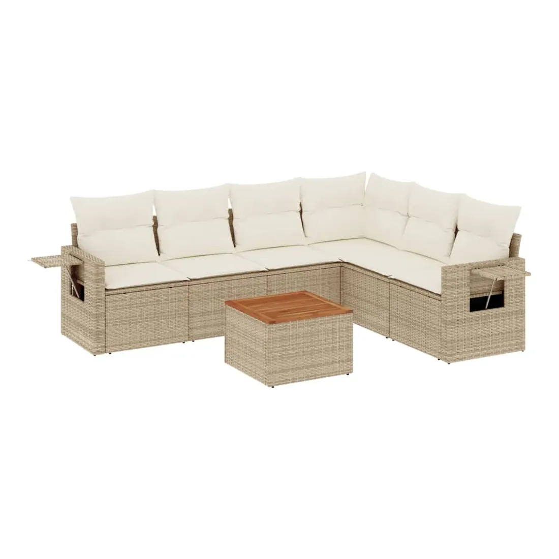 Salon de jardin avec coussins 7 pcs beige résine tressée