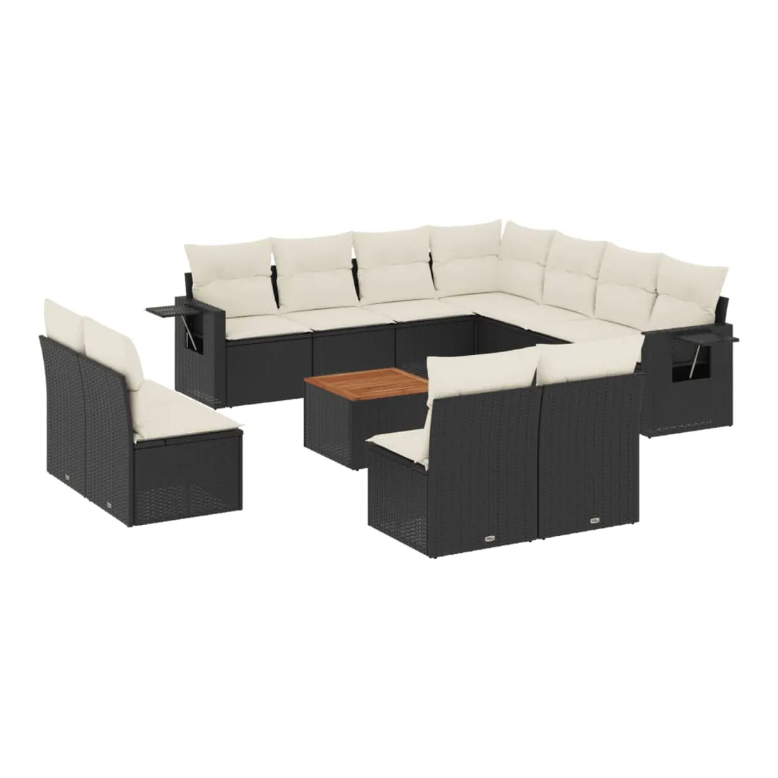 Cet ensemble de canapés de jardin est le complément parfait de votre arrière-cour, terrasse ou patio, offrant un espace confortable et accueillant pour discuter avec la famille et les amis ou simplement se détendre et profiter de l'extérieur. Matériau durable : la résine tressée, également connue sous le nom de poly rotin, est un matériau synthétique solide et nécessitant peu d'entretien qui ressemble au rotin naturel. Il est léger, facile à nettoyer et couramment utilisé pour les meubles d'extérieur en raison de sa durabilité et de ses propriétés de résistance aux intempéries.Fonction de rangement avec sac résistant à l'eau : chaque siège de jardin dispose d'un espace de rangement sous l'assise, complété par un sac résistant à l'eau pour ranger les coussins, les jouets et d'autres objets. Les sacs intérieurs sont dotés d'un couvercle et peuvent être solidement fixés aux sièges à l'aide de bandes auto-agrippantes pour plus de stabilité.Dessus stable et facile à nettoyer : cette table de jardin a un dessus en bois d'acacia robuste, durable et facile à nettoyer avec un chiffon humide.Table d'appoint pratique : ce mobilier d'extérieur comprend des tables d'appoint pliables avec un ressort à gaz sur les accoudoirs, offrant des endroits pratiques pour garder vos essentiels à portée de main.Conception modulaire : cet ensemble de meubles d'extérieur a une conception modulaire, ce qui le rend complètement flexible et facile à déplacer, afin que vous puissiez créer un agencement de meubles d'extérieur personnalisé. Bon à savoir :Pour que vos meubles d'extérieur restent beaux, nous vous recommandons de les protéger avec une housse imperméable.